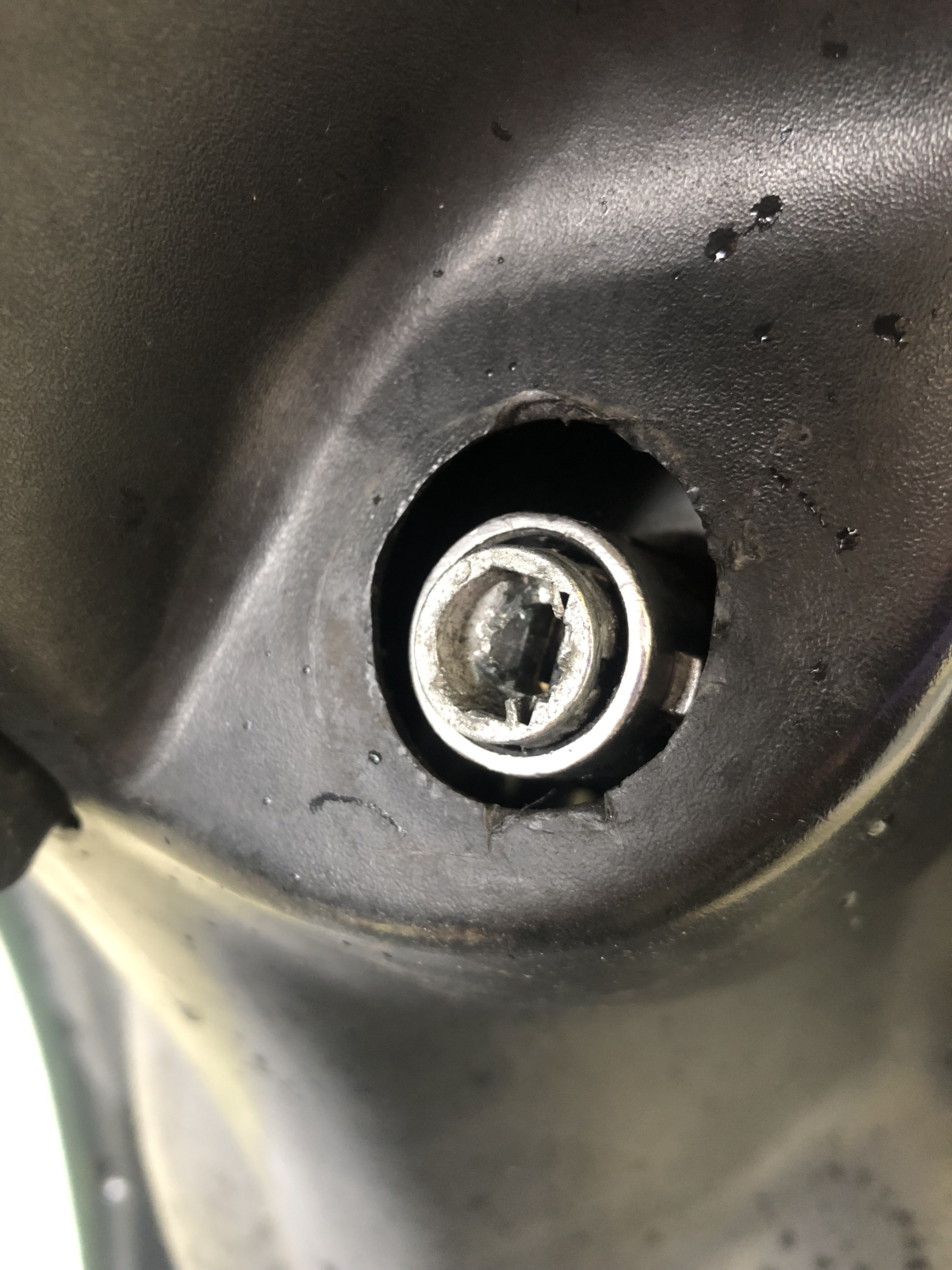 Nachdem auch dabei das Schloss standhielt und der Schraubenzieher statt Schlüssel nicht funktionierte, wollte man es durch ruckartige Bewegungen am Lenker brechen. Auch hier hielt alles. Sprich der Roller wurde nicht geklaut. Der Bolzen hatte schön den Lenker innen "bearbeitet". Bleibt dann die Frage, ob das neue Schloß dann noch reingeht und funktioniert.