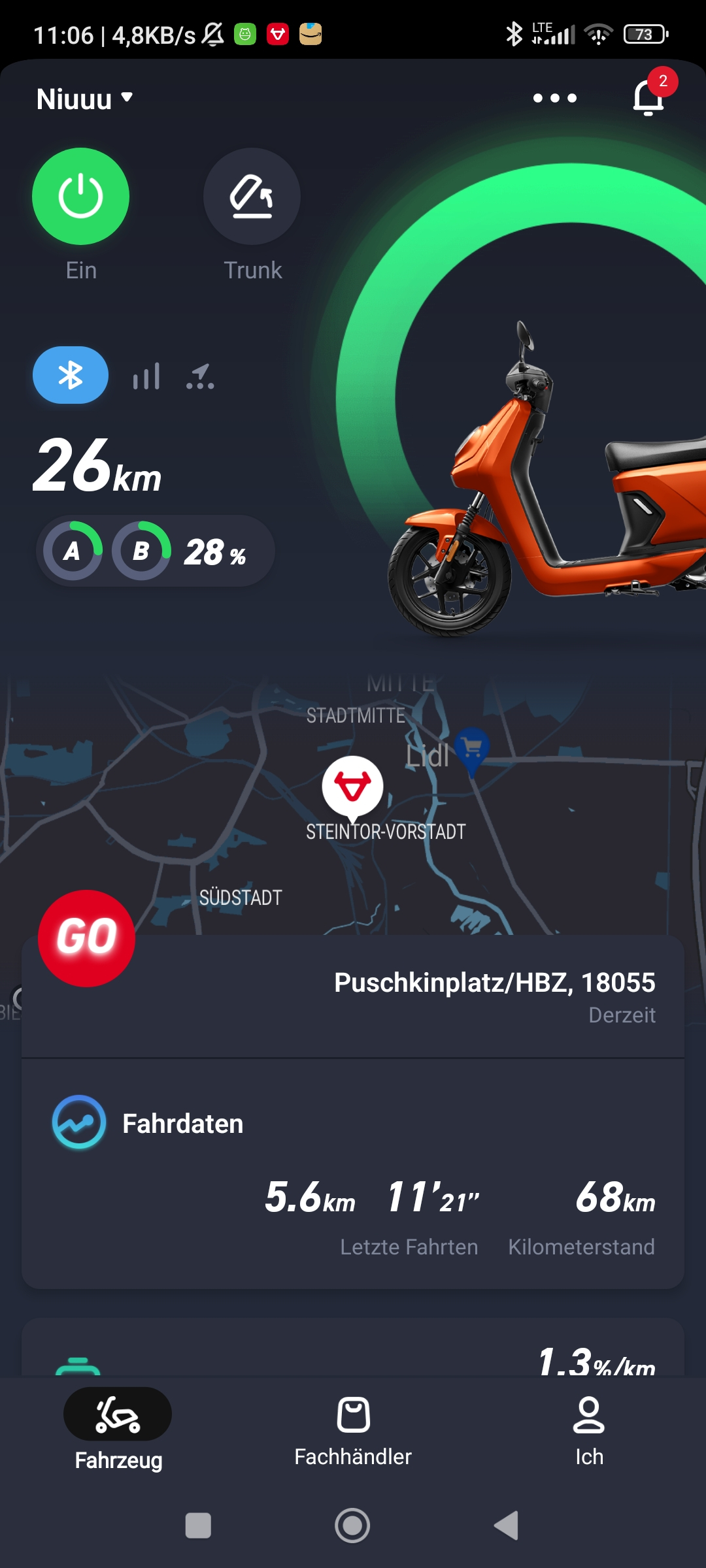 Kurzum, ich wollte gestern nach Warnemünde schön auf der Stadtautobahn und musste letztendlich im überfüllten Zug fahren......das nervt natürlich voll. Plus 5.60€ für hin und Rückweg.... das verbraucht der für 34km im Leben an Strom nicht...😜....Besten Dank erstmal bis hier hin. Werde weiter berichten. Mein Händler war bis dato immer auf Zack.