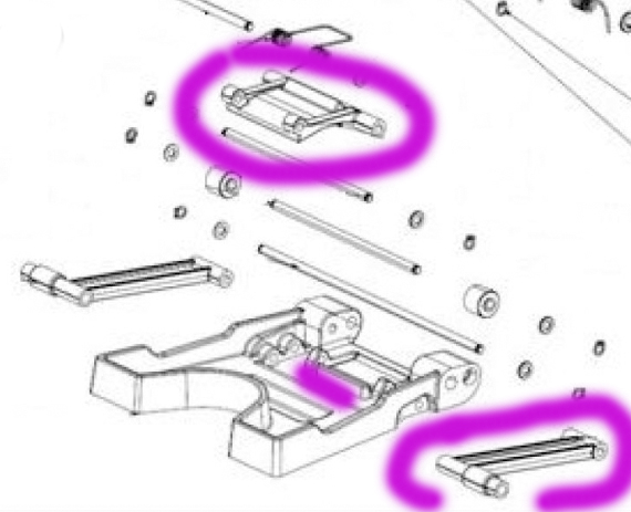 Die 3 markierten Teile sind gebrochen (jeweils die Halterung),