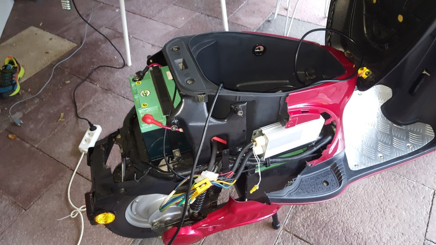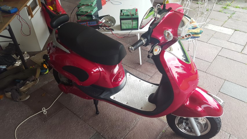 Als bin ich wieder zurück und habe mir 4 weitere Greensaver Akkus die aber nur noch 6,5 Volt hatten von einem anderen defekten Roller geholt und mit meinem Vierfachlader mit hoher Spannung und Strom wiederbelebt und dann über 20-30 h mit niedrigem Strom voll geladen. Alle hatten eigentlich noch volle Kapazität auch wenn sie zuvor Tiefentladen waren. (habe über 40Ah reingeladen, mit 14,4V)