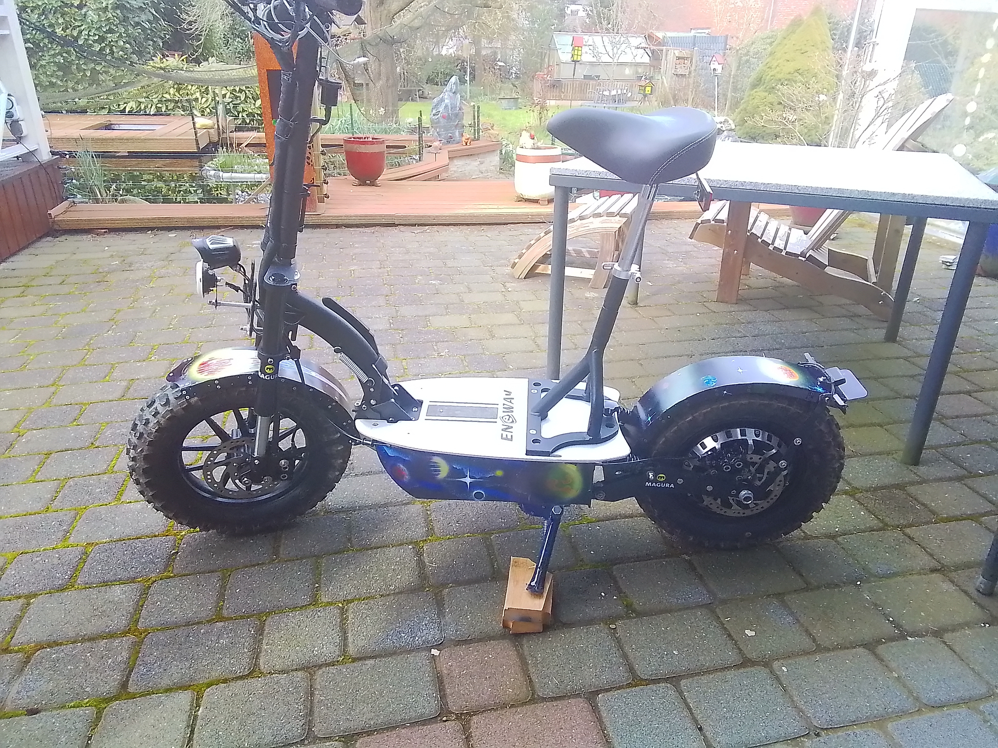 Kannst du mir Stoßdämpfer und Reifen für die Straße empfehlen? Habe einen Kindersitz auf meinen Revoluzzer gebaut und diesen am Sitzgestänge befestigt und den Gepäckträger mit einem Blech versehen, der den Sitz noch etwas stützt.