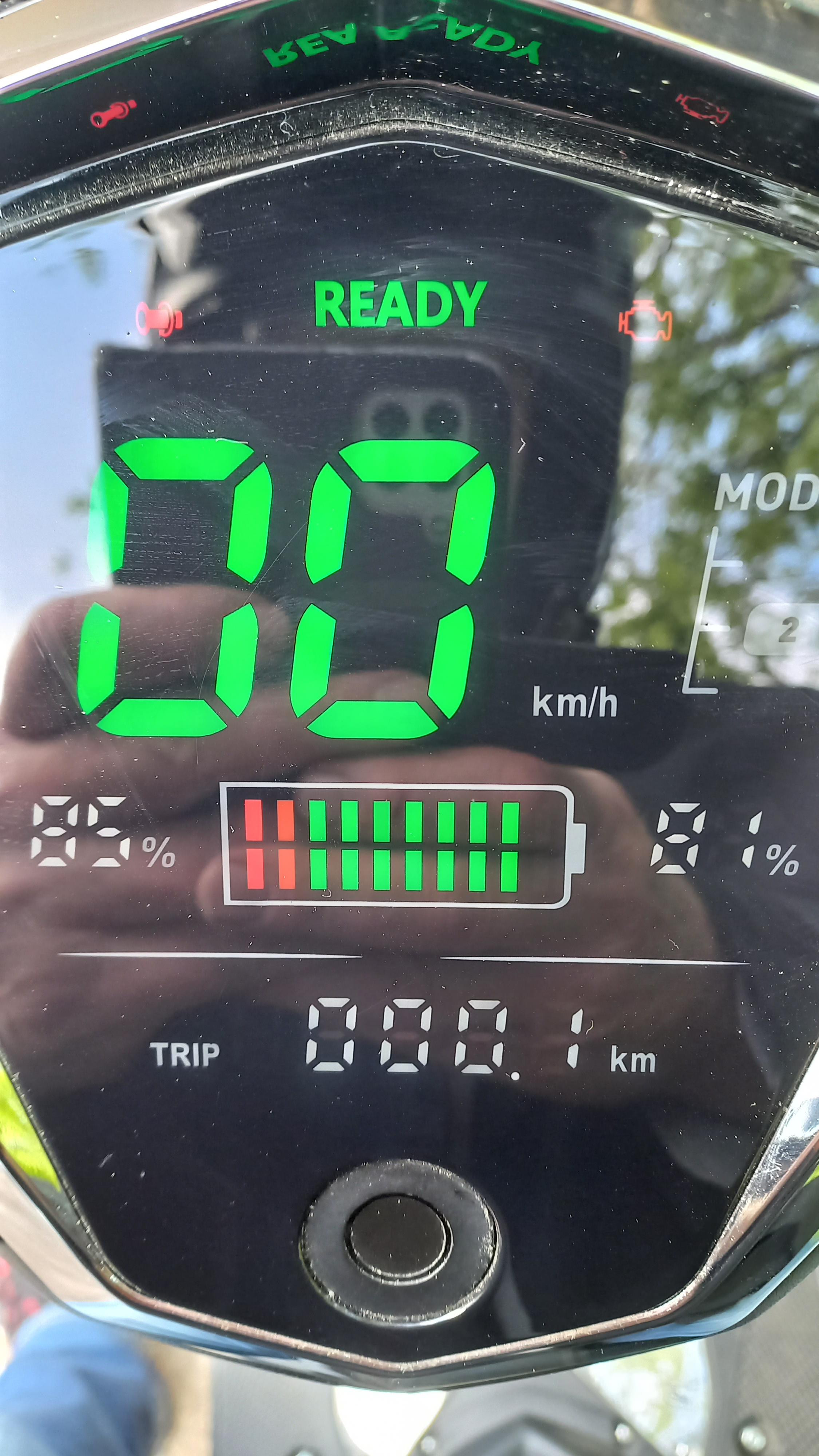 (Seltenes Nebenproblem, Zusammenhang, oder nicht?: Ab und zu fällt eine Akkuanzeige auf 0%, der Roller fährt normal wieter. Das Problem scheint mit einem Schlagloch zu kommen und mit dem nächsten zu gehen)