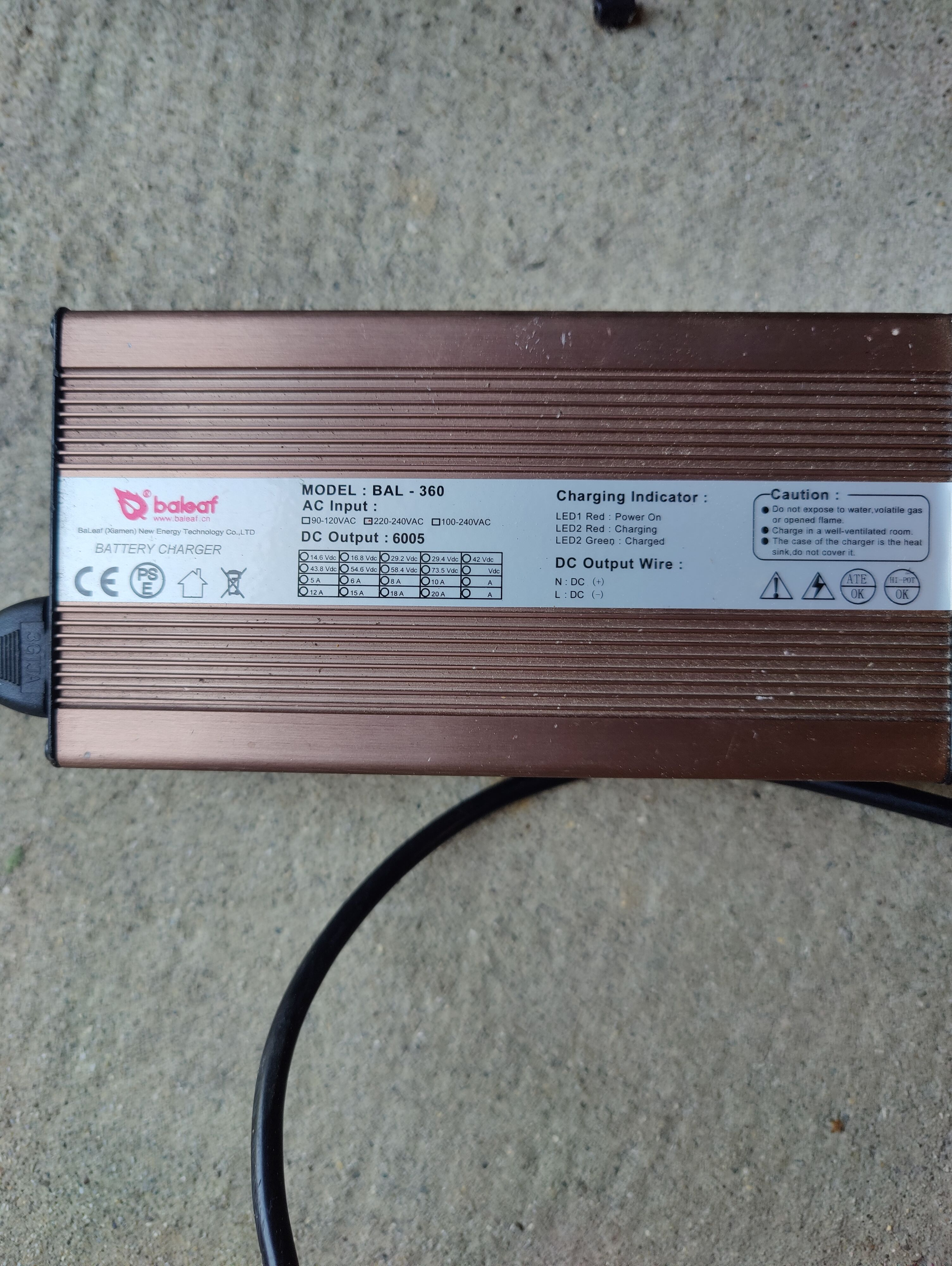 Der hätte dann die Ladegeräteausführung mit 5 Ampere und Ladeschlussspannung 73,5 Volt, die auch mit Blei-Akku funktionieren würde.
