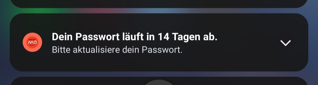 Nur jetzt überraschte mich meine App mit einem Hinweis, dass das Passwort in 14 Tagen abläuft.