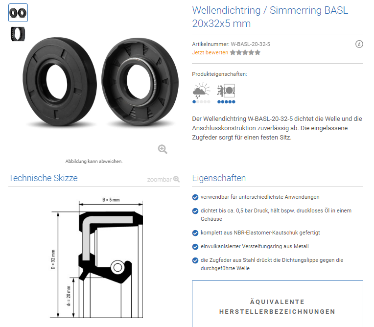 Es müssen ja auch die zwei Wellendichhtringe neu bestellt werden, die auf den Distanzbuchsen laufen und größere Innendurchmesser haben.