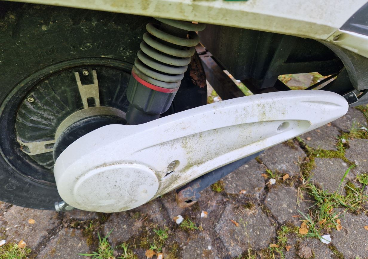 Das ist der Ausgangszustand: Es ist halt ein 1500€ China Roller. Der Lack ist an Stellen ab, der Lack ist dünn, ich vermute eine Schicht, natürlich nicht verzinkt. Kann man für den Preis nicht erwarten. Hat aber auch zur Folge das der Roller schnell altert, vor allem wenn er draussen steht, mit dem Effekt dass der Hersteller mehr verkauft.