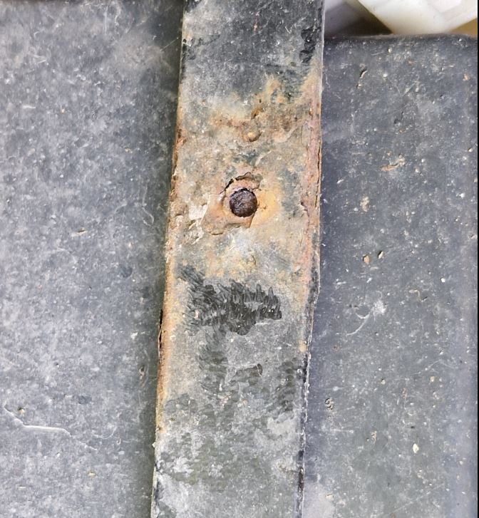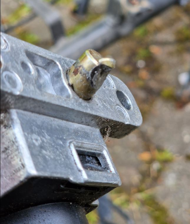 Denn 2 der Schrauben waren festgerottet. Warum? die Schrauben enden unten in einem Flech im Spritzbereich, welches sehr rostig ist. Bei vielen Dingen haben die Designer witgedacht und die Schraubenköpfe sind unten im Spritzbereich und die Gewinde ausserhalb. Hier ist es umgekehrt, und so sieht das von unten aus: Da ging nichts mehr, und da die Schrauben tief im Akkufach sitzen war das alles sehr umständlich und man bekommt keine Werkzeuuge da rein.Der Kreuzschlitz war schnell verrammelt. Flex geht nicht, Zange geht nicht. Dadurch, dass ich das Gummi herausgenommen hatte war aber 10mm Spiel da. Und so habe ich die Schrauben mit einer kleinen Metallsäge unterhalb des Fachs durchgesägt.