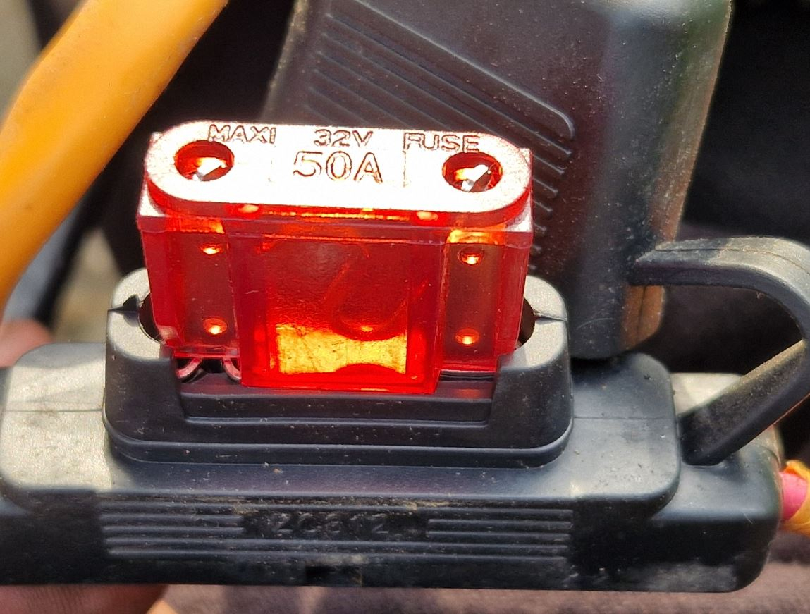 Das ist die Hauptsicherung zwischen Motortreiber und Akku. Fällt jemandem was auf? Tipp: Ladeendspannung des Akkus ist 65,6V.