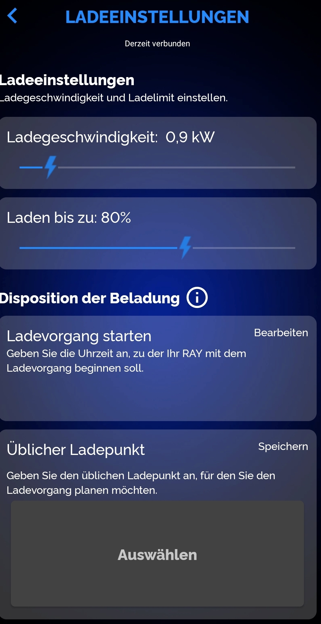 Viel schlimmer ist, dass man Einstellung welche man zum Ladevorgang in der App gemacht hat, am Ray direkt nicht ändern kann.