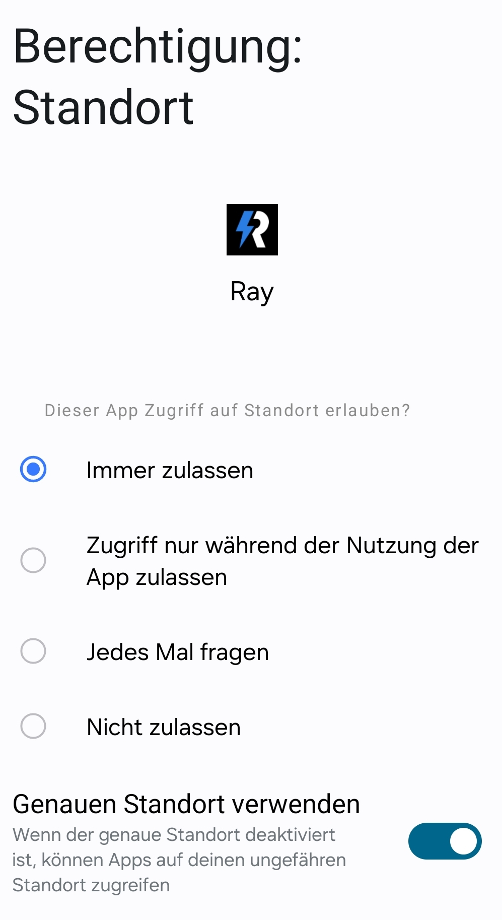 RAY App Fehlermeldung Standortberechtigung