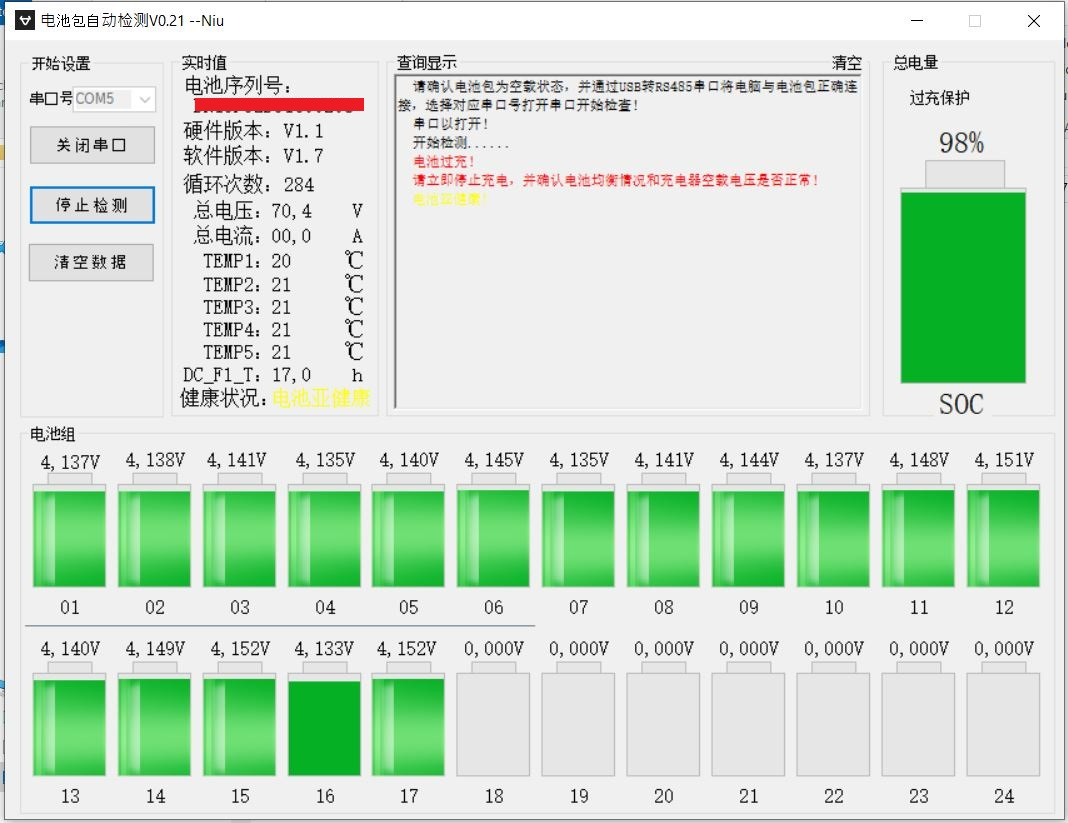 Wie man im Bild sieht, schmeißt das BMS auch eine Überladenmeldung raus ( die rote China Schrift )