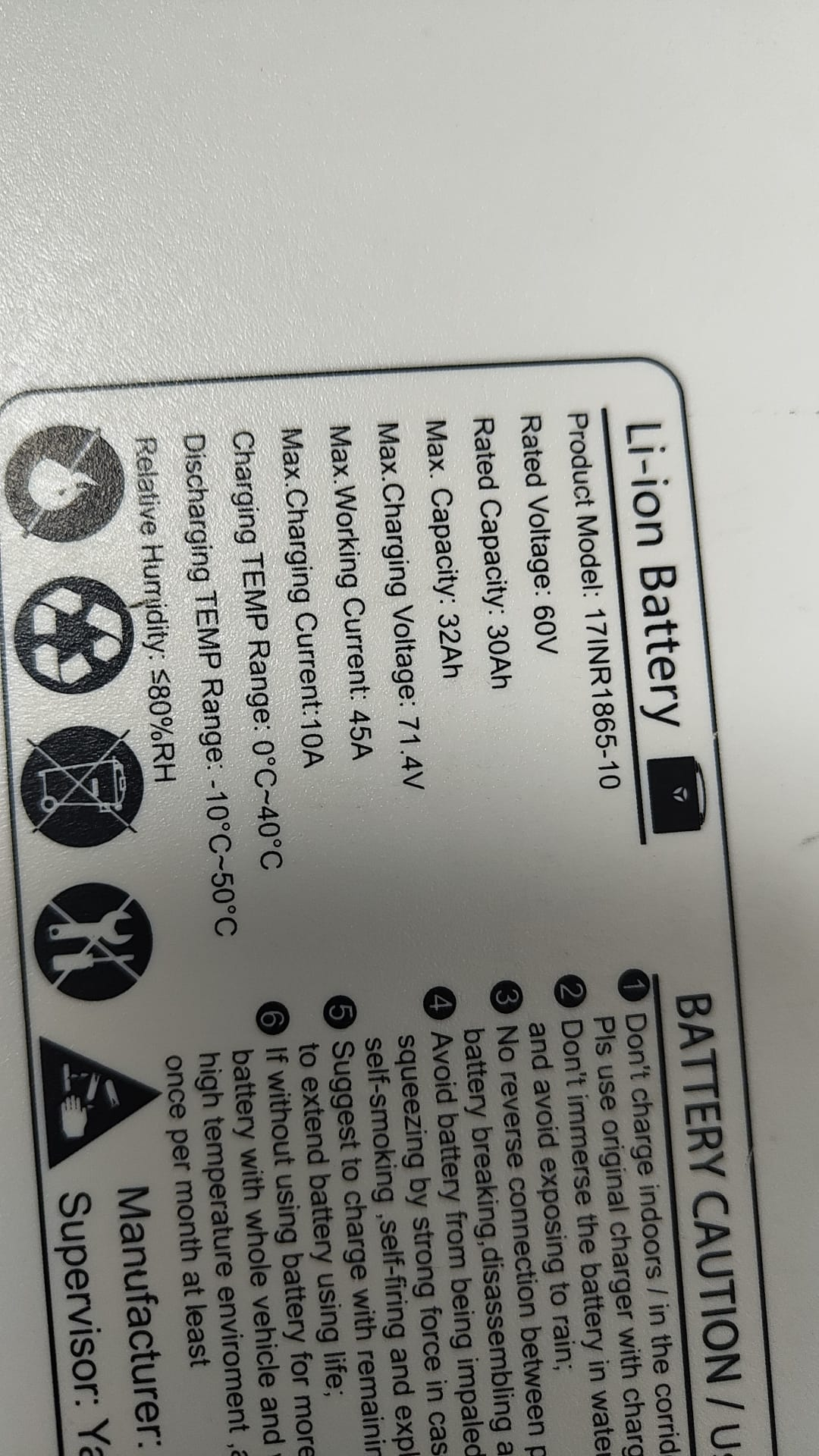Ich habe einen 32Ah 60V Akku von Yadea, der hat eine gemessene Kapazität von ziemlich genau 31Ah. Da das originale Yadea BMS nicht dazu zu bewegen war, mit dem Roller zu kommunizieren, wurde das originale BMS gegen ein JBD 10S-17S 40A BMS getauscht, was soweit auch funktioniert.