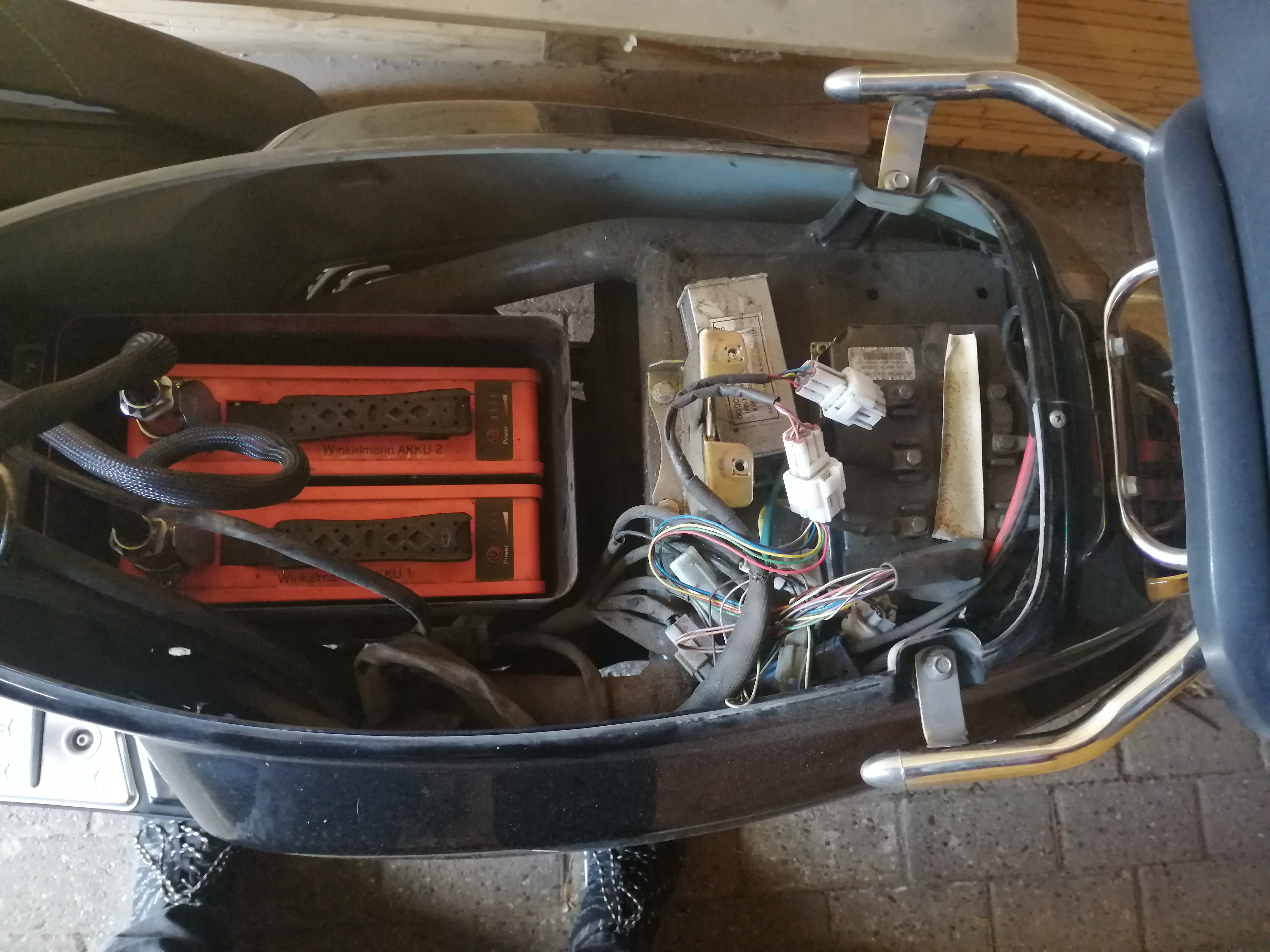 Ich habe die Sitzbank mal abgeschraubt und ein Bild davon angehängt. Ich vermute er meint den "dicken" weißen Stecker der 2x vom Controller kommt.
