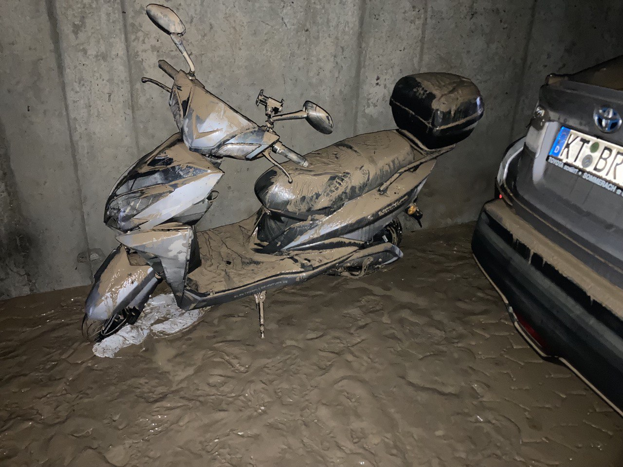 Da der Roller bei der Überflutung stromlos war, könnten gereinigte Teile nach Ausbau ggf. noch nutzbar sein, wenn sie jetzt vor Korosion geschützt werden (z. B. muss aus dem Motor das Wasser raus, falls man da was retten will. Aber Schalter, Zündschloss usw. sind nicht ganz verloren, wenn man die mit z. B. WD40 behandelt, was das Wasser unterkriechen kann. Bei einem E-Roller aus der Flut2021 (mit Akku drin) war alles total marode, was Spannung geführt hatte (unter Wasser).