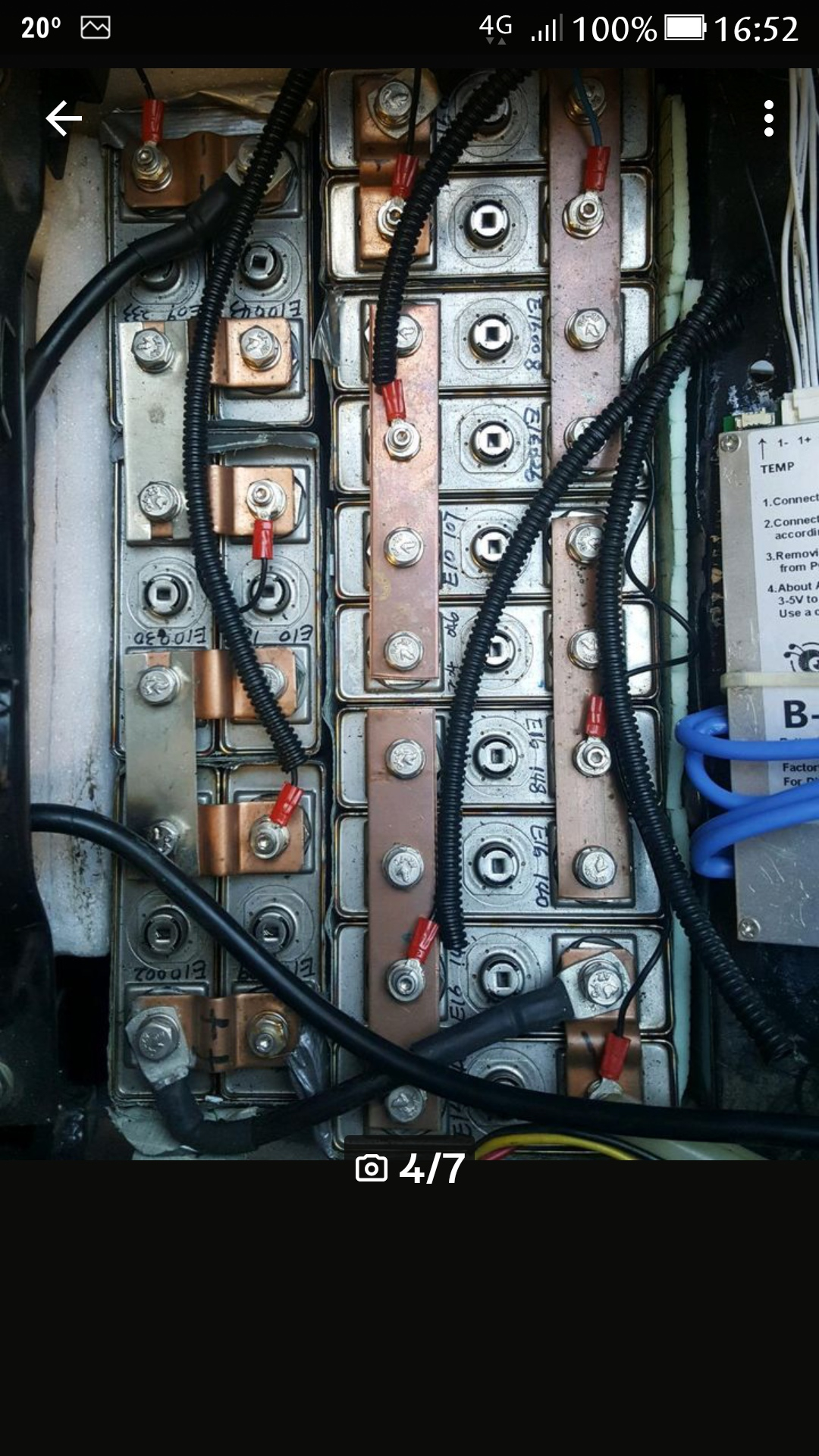 Die ganze Anordnung wirkt ja durchdacht und solide. Die Zellen sind recht ordentlich ausbalanciert. Das könntest du mit dem Nachladen einzelner Zellenpaare noch optimieren. Oder mit einem passenden Ladegerät mal richtig vollladen. Jedenfalls scheint die Batterie intakt zu sein. Fast zu schade zum Verkaufen...