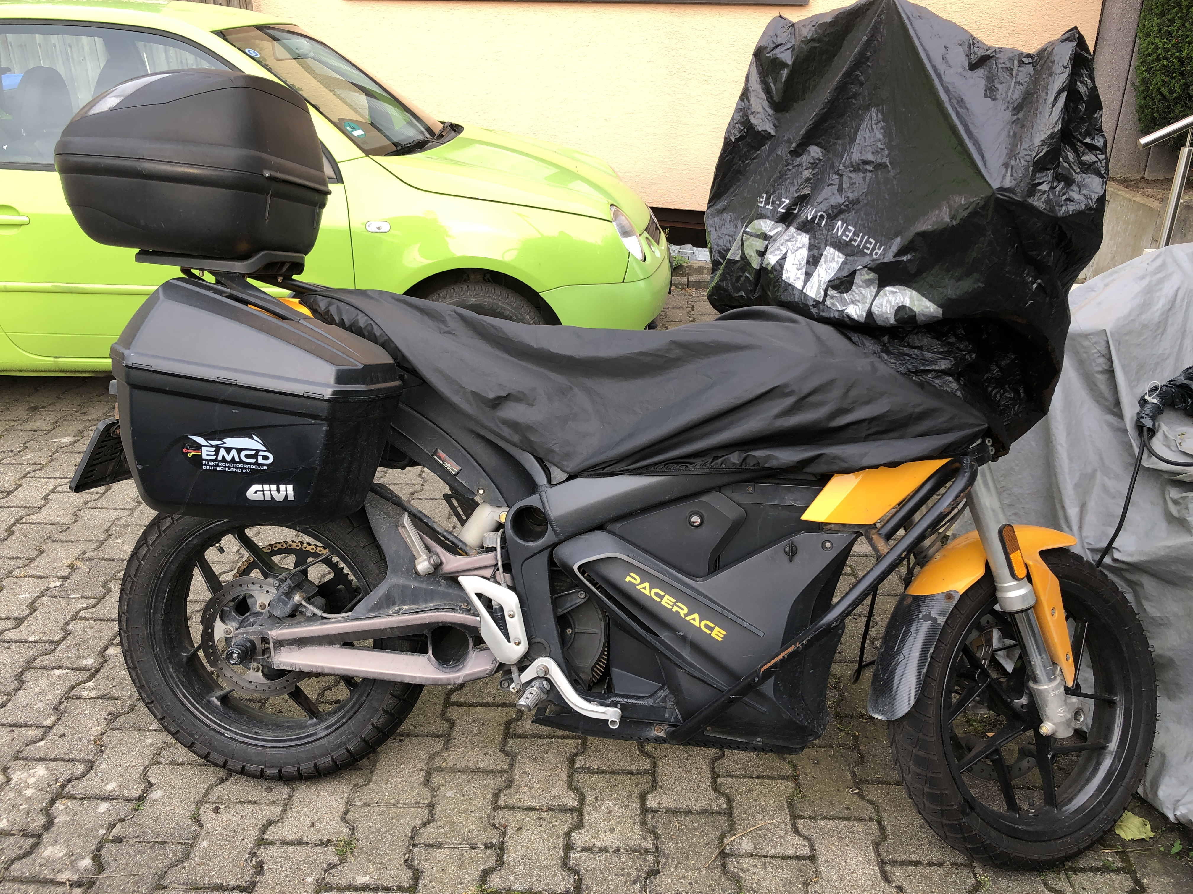 Wenn also die Abdeckung über das komplette Fahrzeug gezogen wird, das Kennzeichen entweder nicht verdecken oder die Abdeckung so rüber ziehen, dass das "Kennzeichenschaufenster" über dem Kennzeichen ist.