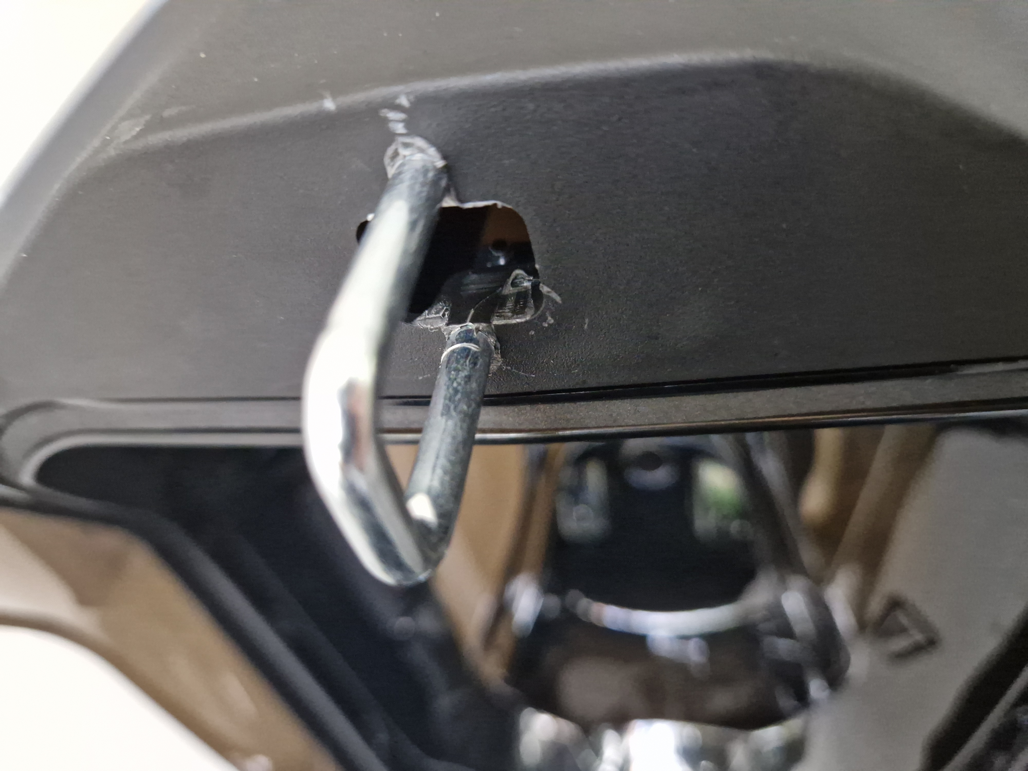 Zuerst wollte ich die Schlussstange etwas vorziehen/abheben, aber ich glaube bei dem Plastikdeckel ist viel geclippt