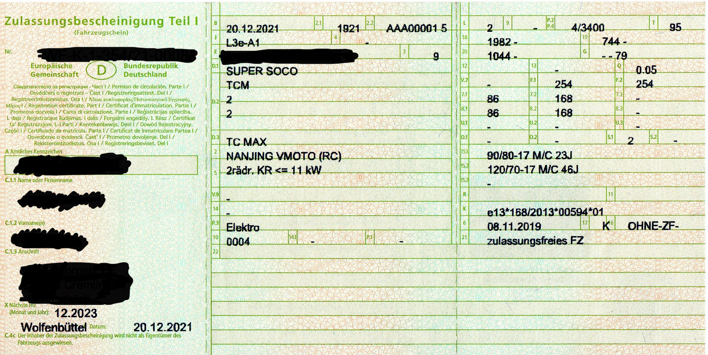 - Roller: Super Soco TC Max 2021 (BJ 2023)