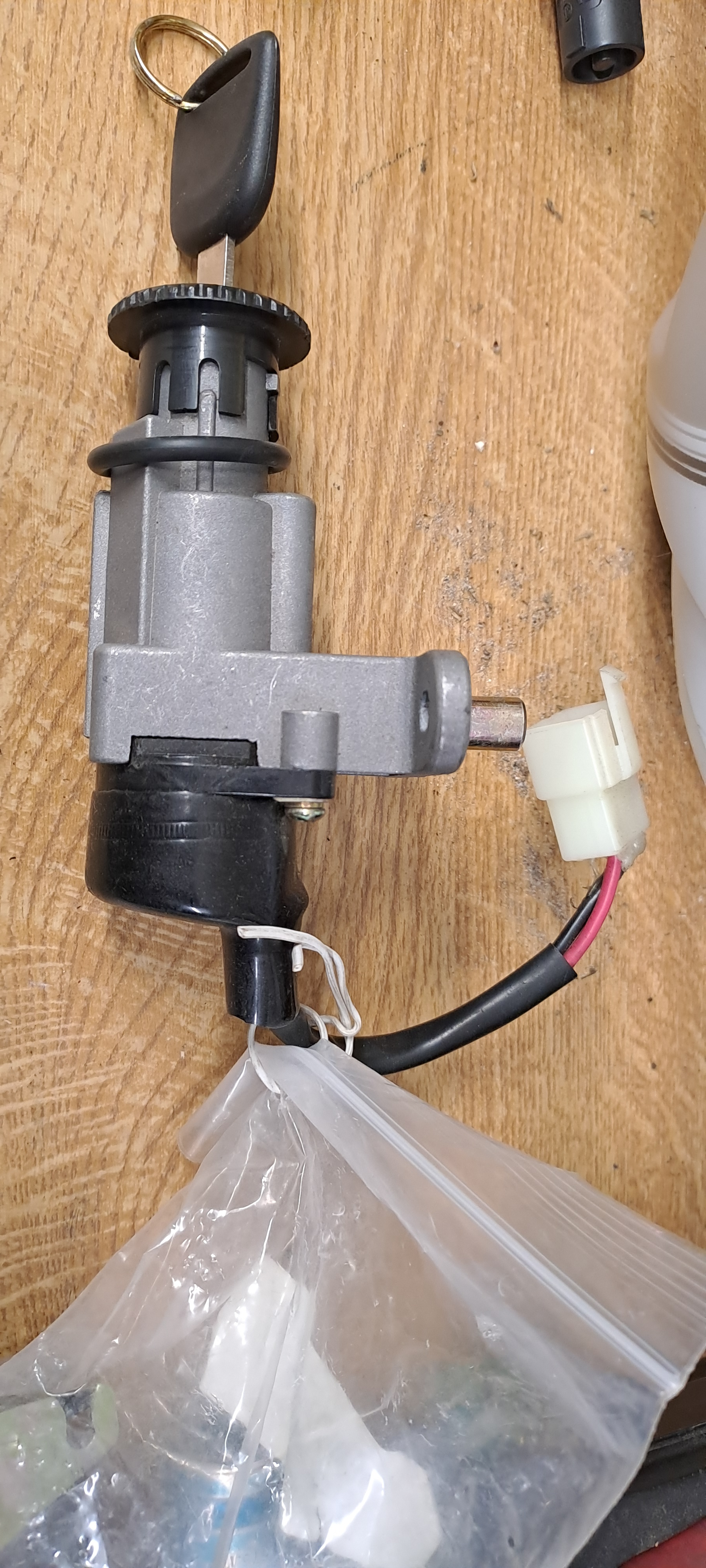 Der Satz mit zwei neuen Schlüsseln, hat auch das Schloss für die Sitzbankentriegelung mit dabei (Tankdeckel- und Handschuhfachschloss auch, aber natürlich unnütz).
