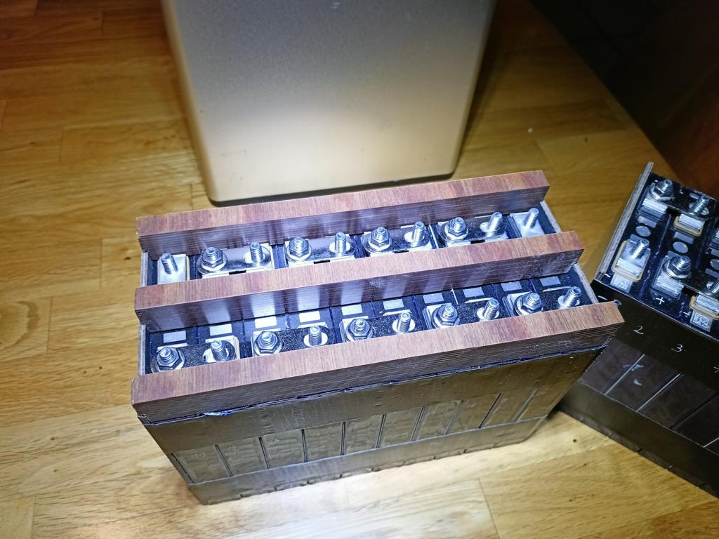 Bei mir waren ca 1cm starke Alu-Teile mit Rippen, ähnlich einem Kühlkörper, mit zwei Metallspannbändern an jedem Viererpack meiner NoName Lifepos im HRTK122 (Zyklopenauge) verbaut.