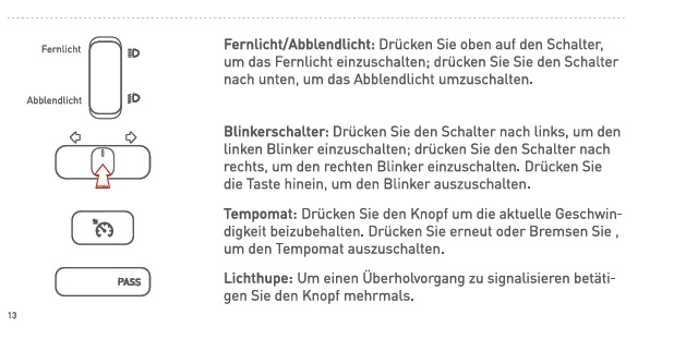 Zum Ausschalten -> Schalter nach unten, Schalter nach oben und Schalter nach unten. Warum auch immer, jedenfalls kriege ich das Fernlicht nur mit dieser Kombination aus.