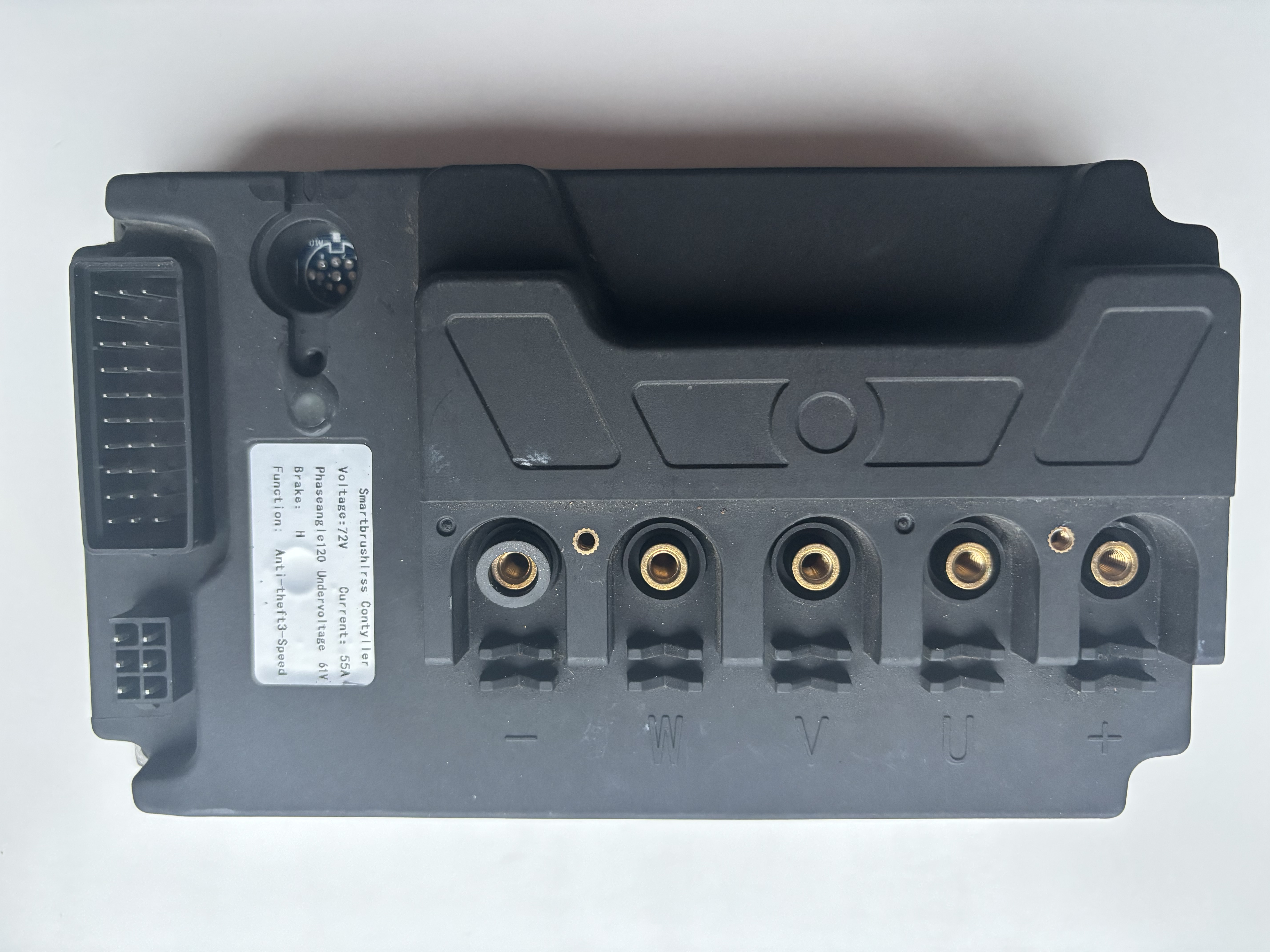 Allerdings sollte ggf. der Strom begrenzt werden, wenn z. B bergauf der Motor zu heiß würde. Da hier aus einem Akku 72V 20Ah aber wohl kaum mehr als 50 Ampère mit Spannungslage >72 Volt über Minuten herauszukitzeln sind, wird das m. E. kein Problem sein.