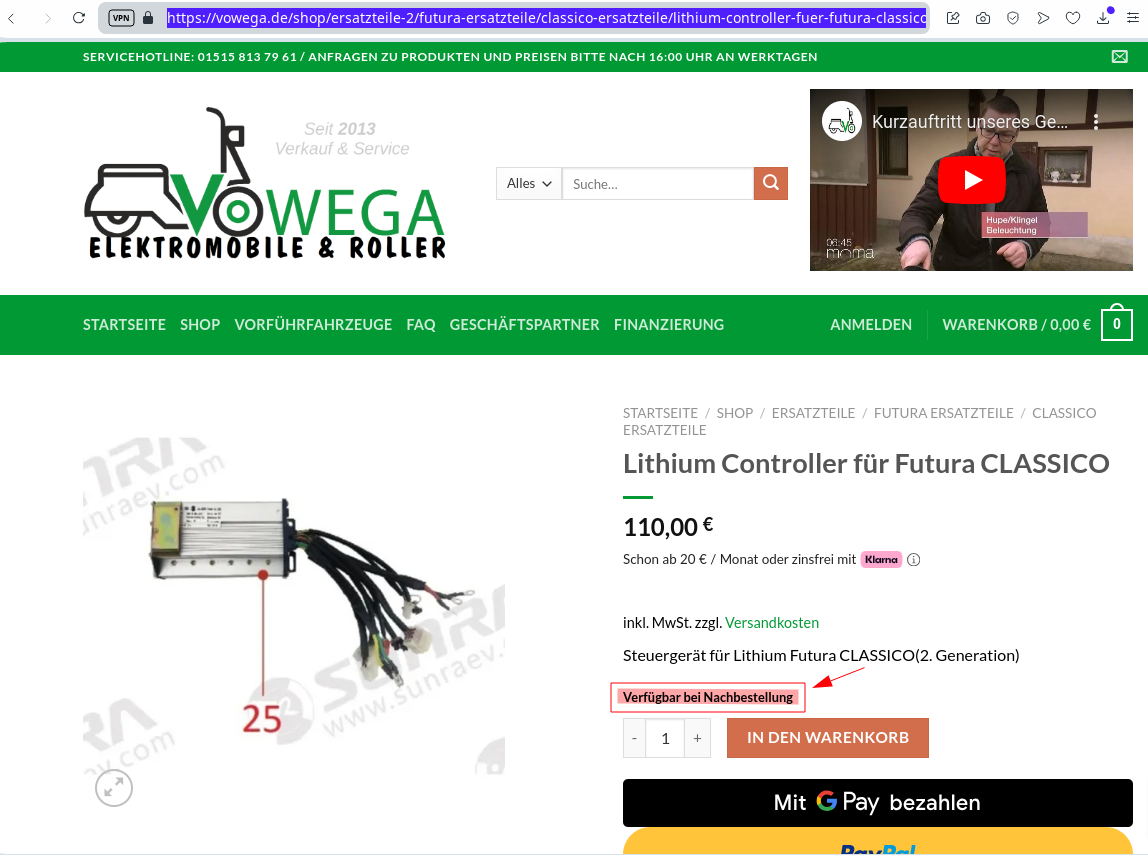 Der Controller von vowega passt leider nicht, das ist ja genau das Problem meiner ist wohl 1. Generation habe ihn 2019 gekauft und so genau ist das bei denen auch alles nicht definiert, aber diesen hatte ich schon hier und der passt vorn und hinten nicht.