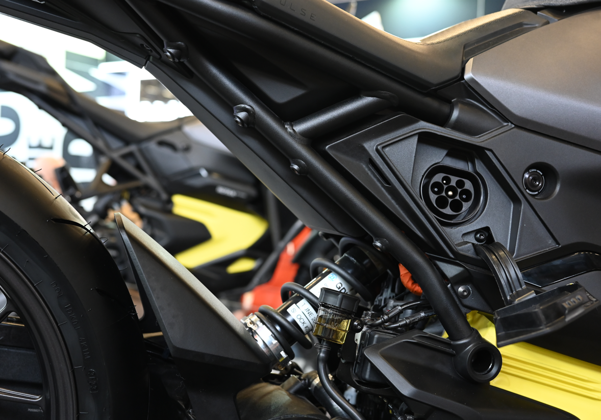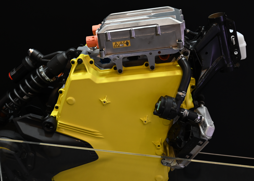 Beiden gemein ist die in Kooperation mit ROTAX entwickete Antriebseinheit, bei der Antriebsschwinge, Motor, Motor-Controller, Ladegerät und Batterie in einem metallischem Strang zusammengefürt sind, dem auch zwei Flüssigkeitskühler vorgelagert sind. Das wirkt alles sehr durchdacht, auch für die Produktion größerer Stückzahlen: Viele Grüße