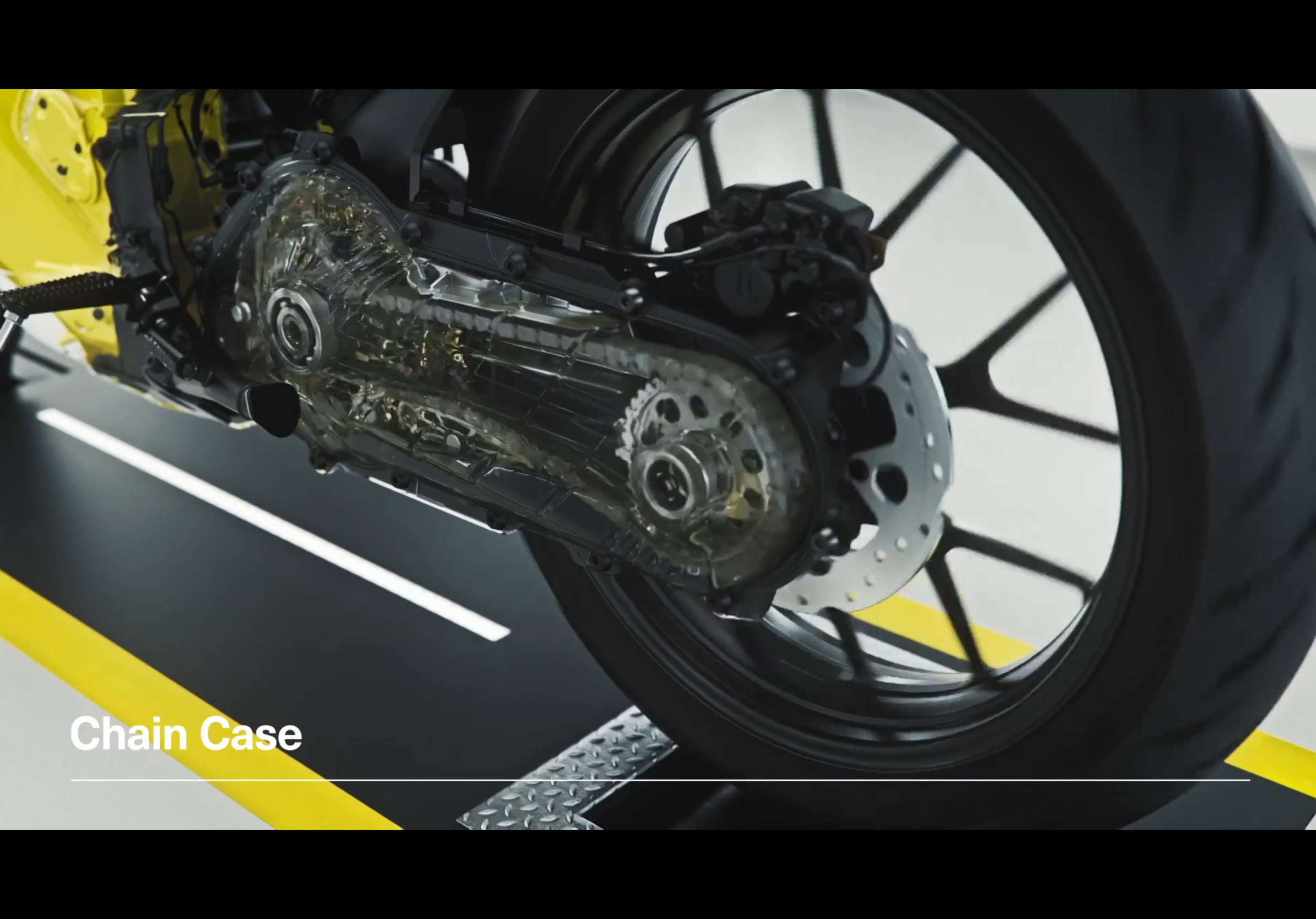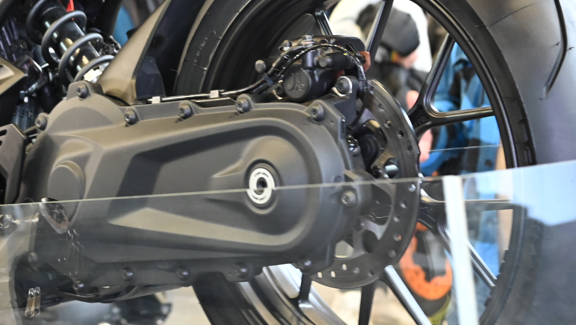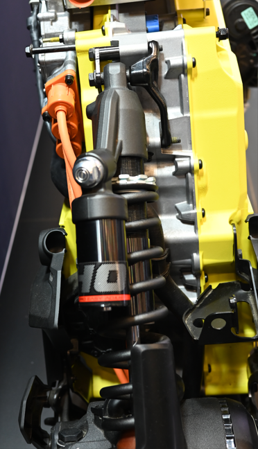 Der Motor ist hier offenbar kein Teil der (vollständig) gefederten Masse sonder fest an der Schwinge.