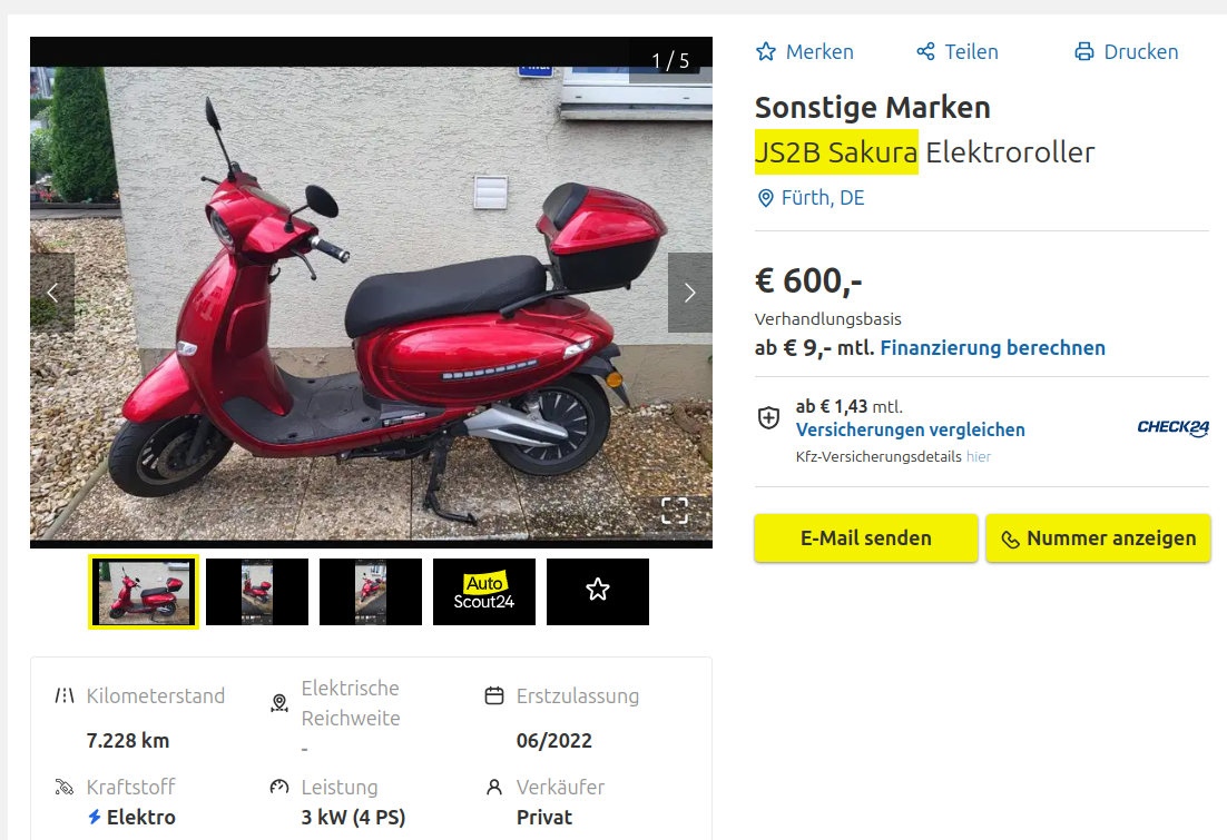 Auch Roller des Herstellers Sakura selbst werden gar nicht mehr angeboten. - Oder irre ich da?