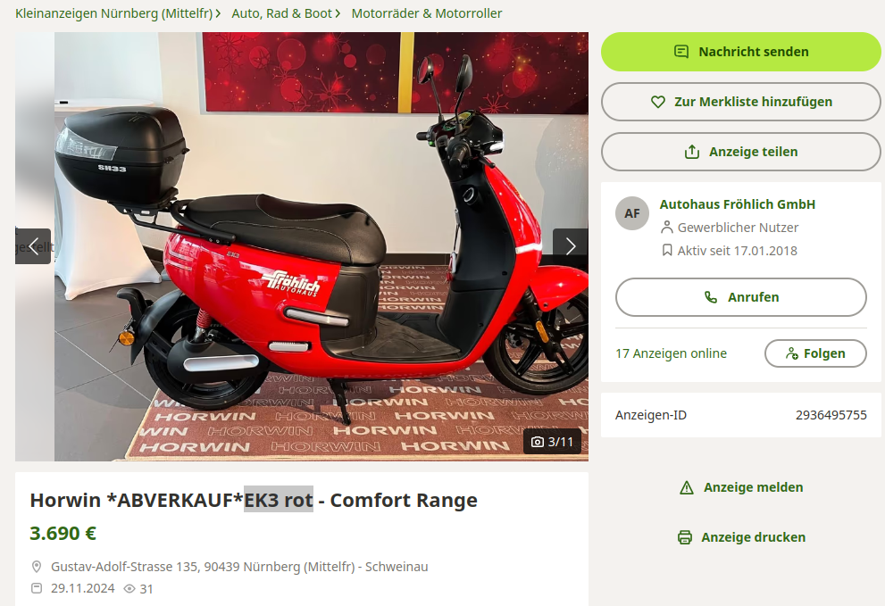 Wäre halt mit 2.500 Euro deutlich günstiger als ein neuer Horwin