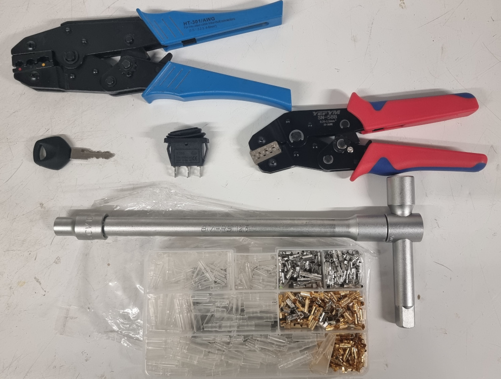 - Motorradstecker (Crimp Terminals). Da ich die dauernd brauche habe ich mir gleich einen Satz mit ein paar Hundert zugelegt.