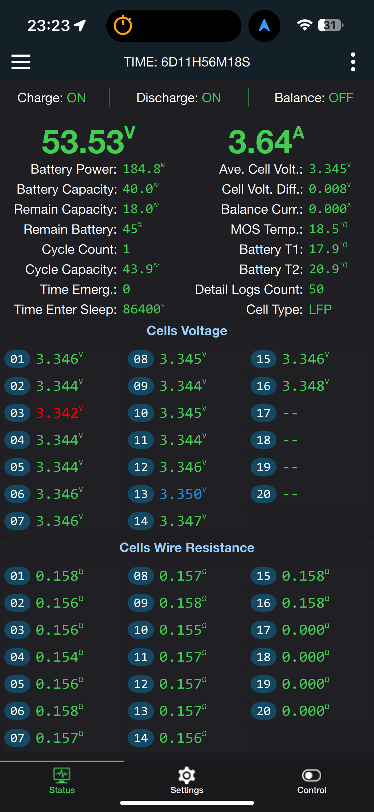 Hier nochmal die Übersicht des Akkus in der BMS-App.