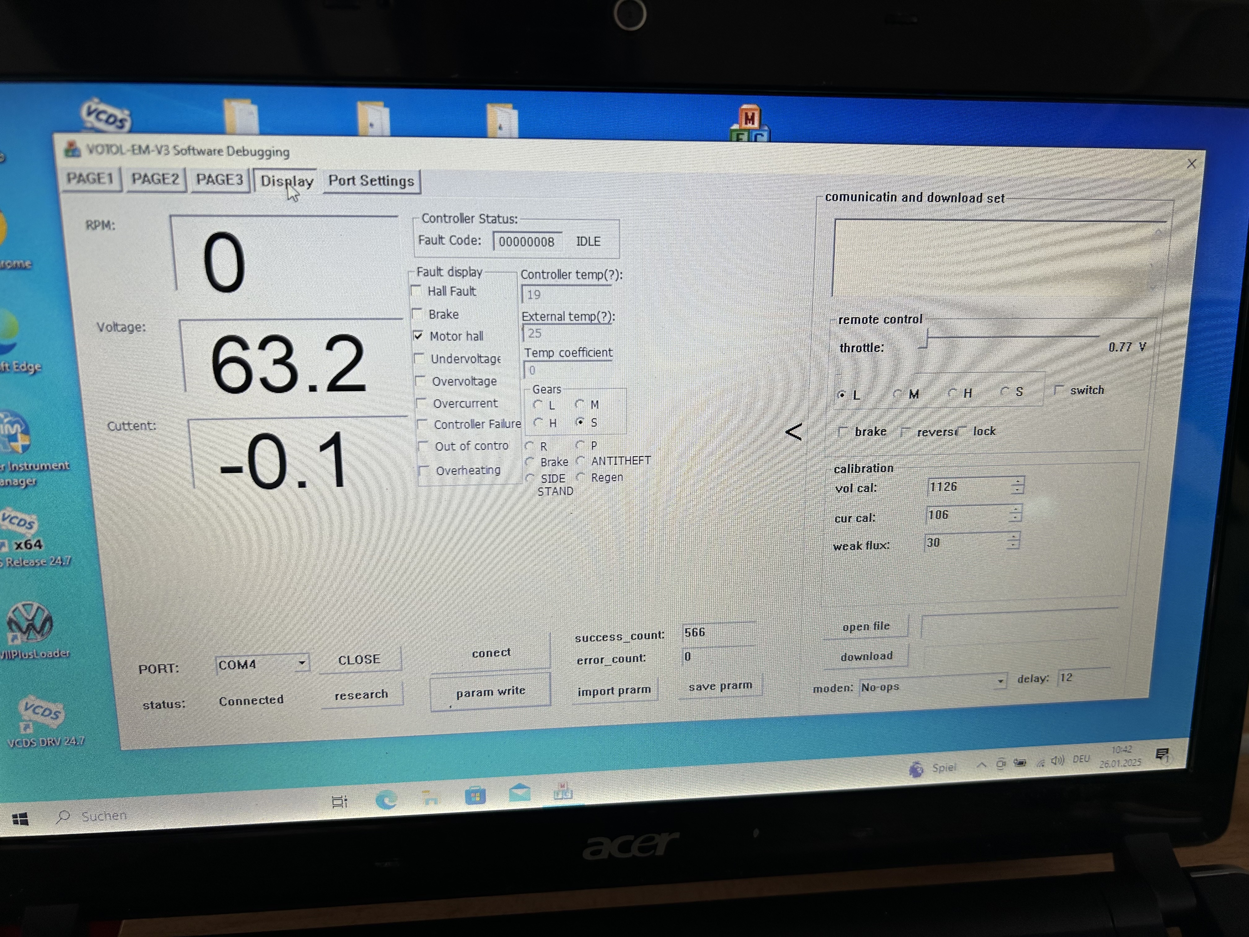 Hallo ich habe eine Govecs Flex 2,0 ich habe einen Votol Em 100 eingebaut ich brauche aber noch die Parameter Poolbare / hall Shift Angle ,Flux ….