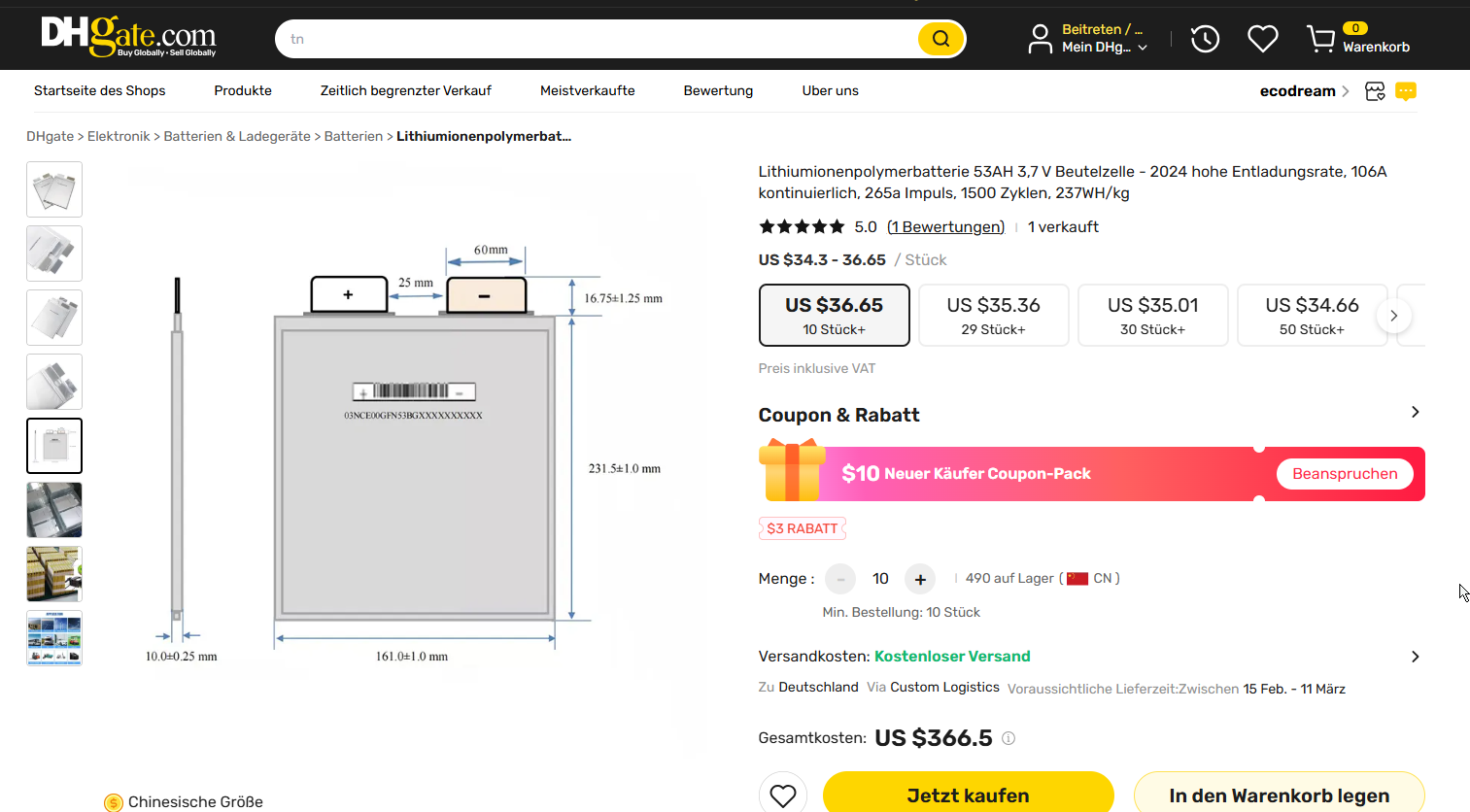 Kannst ja den Lieferanten mal fragen ob er zufällig zwei Lagerleichen hat.