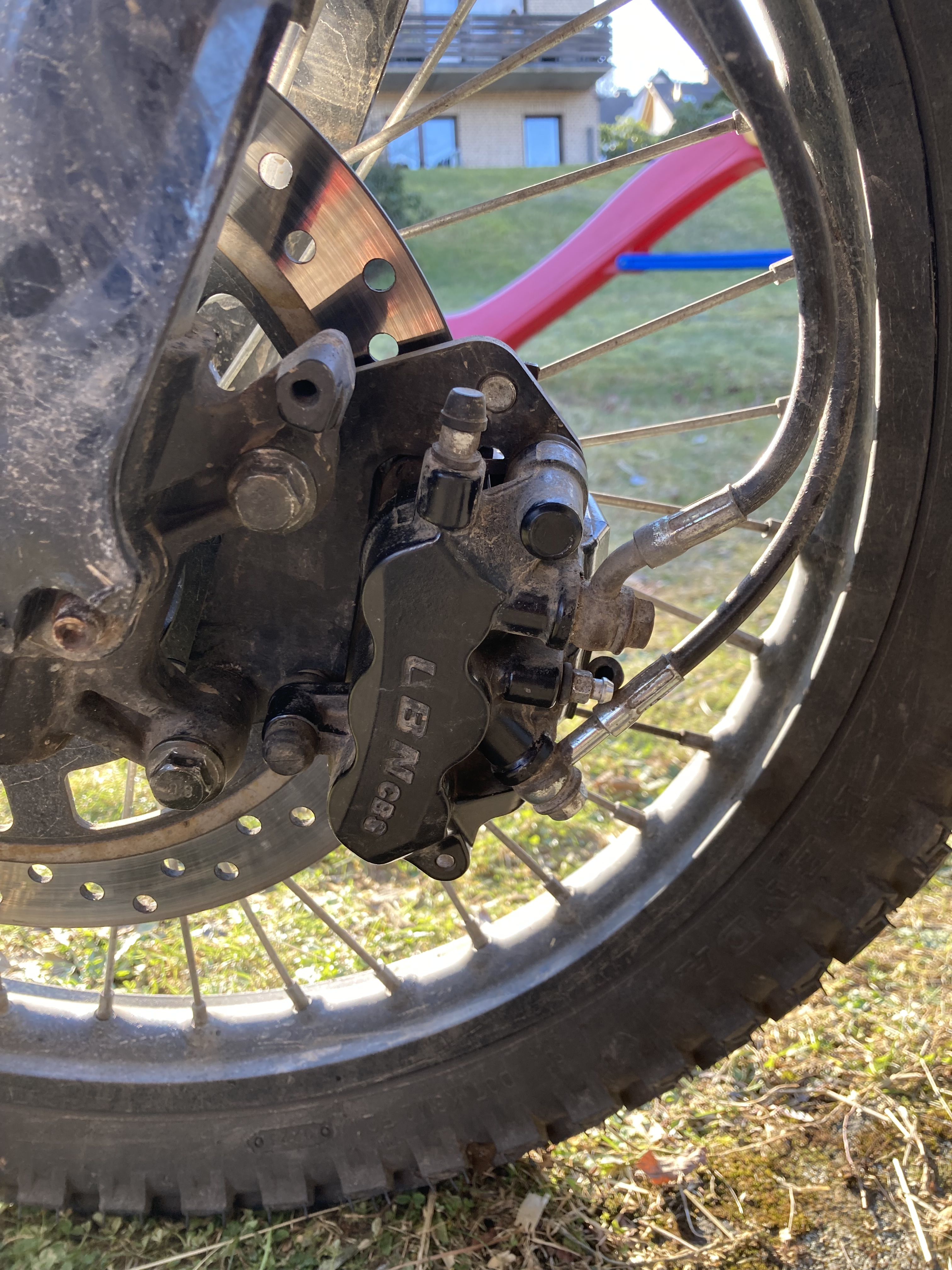 ) konnte ich n Stoppie machen, aber dann war quasi stillstand angesagt, da der Kolben die Beläge nicht wieder freigegeben hat, diese also die Scheibe ebenso nicht.