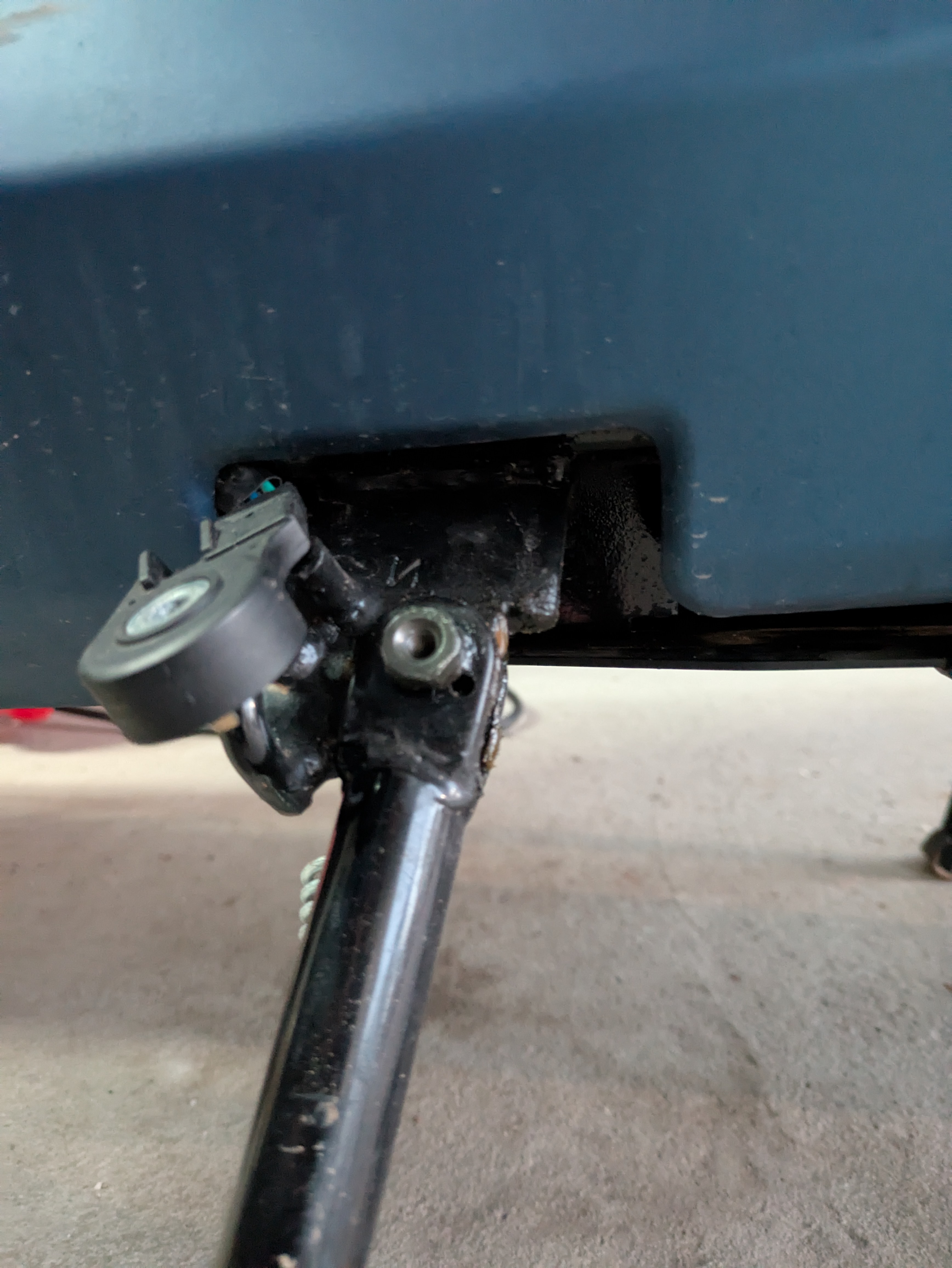 Ich habe ein Problem mit meinem Seitenständer. Mir ist vor kurzem ausgefallen, dass ein Teil an meinem Ständer weg hängt (siehe Bilder). Wahrscheinlich hat sich dort einen Schraube gelockert. Jetzt habe ich teilweise ein Problem den Roller zu aktivieren, da der Sensor wenn er nicht direkt am Seitenständer ist, beim einklappen nicht reagiert und man den Roller so nicht aktivieren kann, da eine Sicherheitseinstellungen es nicht möglich macht loszufahren wenn der Ständer unten ist.