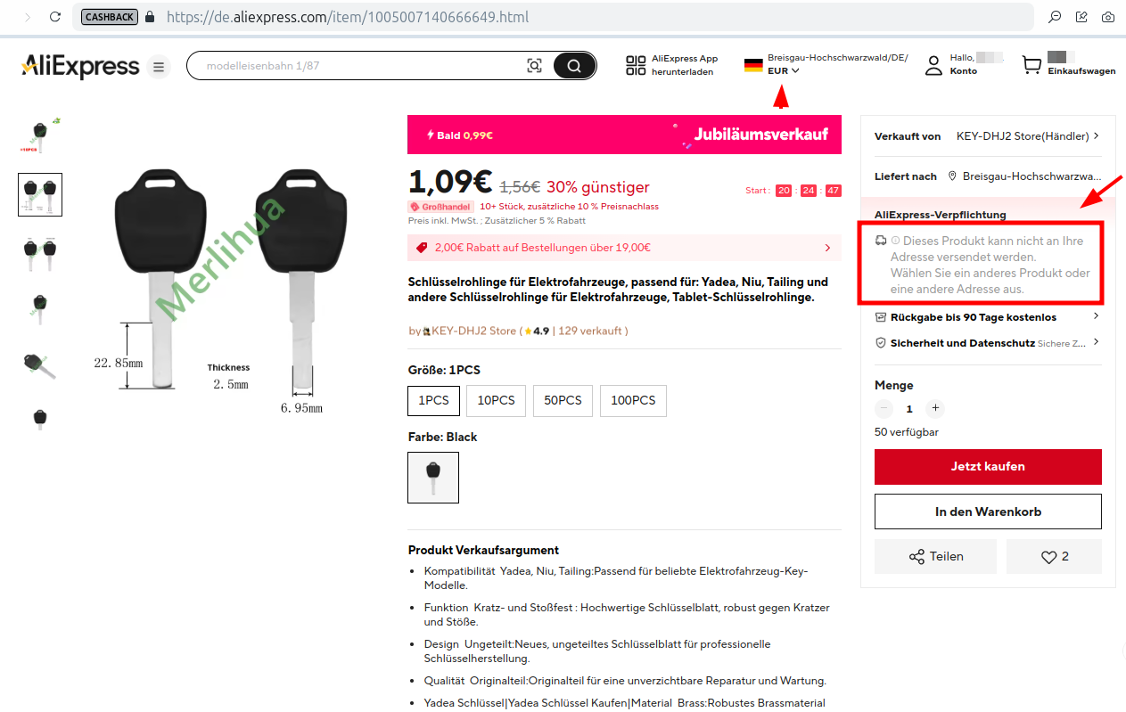 Weshalb kann bei Aliexpress bestimmtes Produkt nicht nach D geliefert werden?