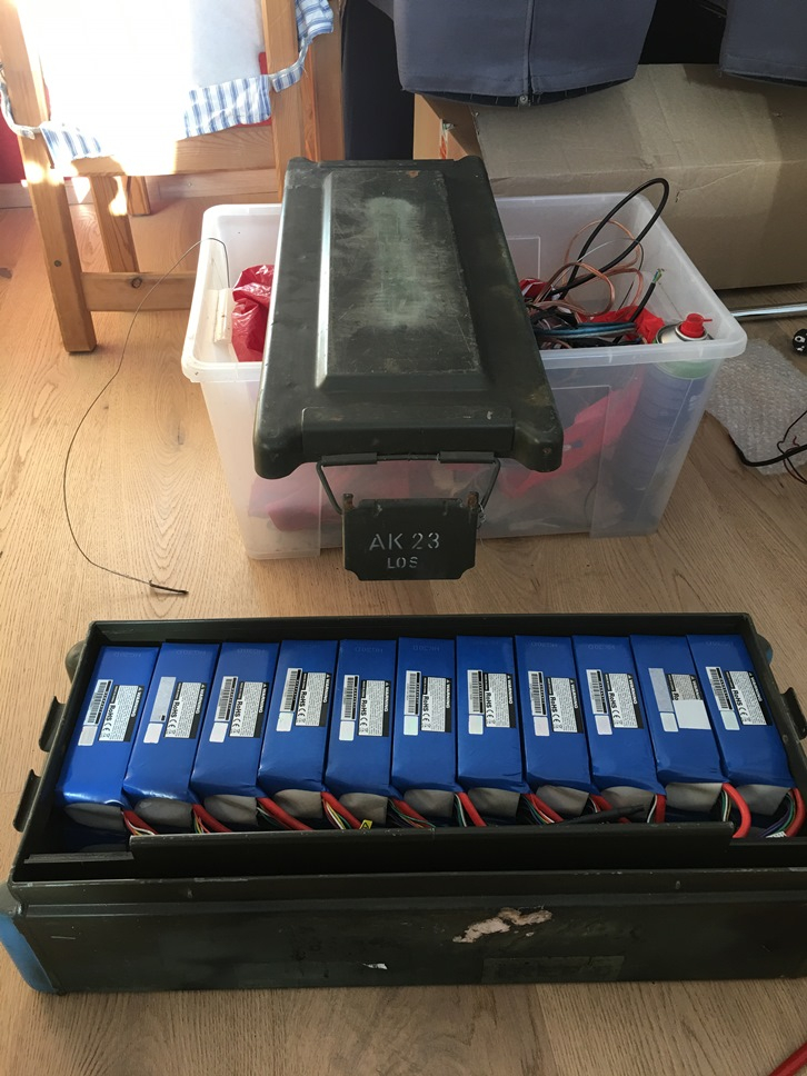 Munitionskisten (aus Stahl) sind auf jeden Fall die richtige "Verpackung" für Li-Akkus mit "Feuerteufel-Chemie", also z. B. LiCoO2. Ich selbst kriege mittlerweile gelegentlich kostenlos gebrauchte Laptop-Akkus, aus denen ich die Zellen herausoperiere. Sind leider meistens besagte LiCoO2-Zellen, aber immerhin von Namenhaften Herstellern wie Sanyo/Panasonic oder LG und bisher auch nie mit toten Zellen, sondern nur mit verringerter Kapazität. Zur Verwendung in irgendwelchen Traktionsakkus eignen die sich natürlich nicht, aber für Bastelprojekte durchaus.Rov hat geschrieben: Mo 13. Feb 2017, 09:31 Hallo Hans Werner,