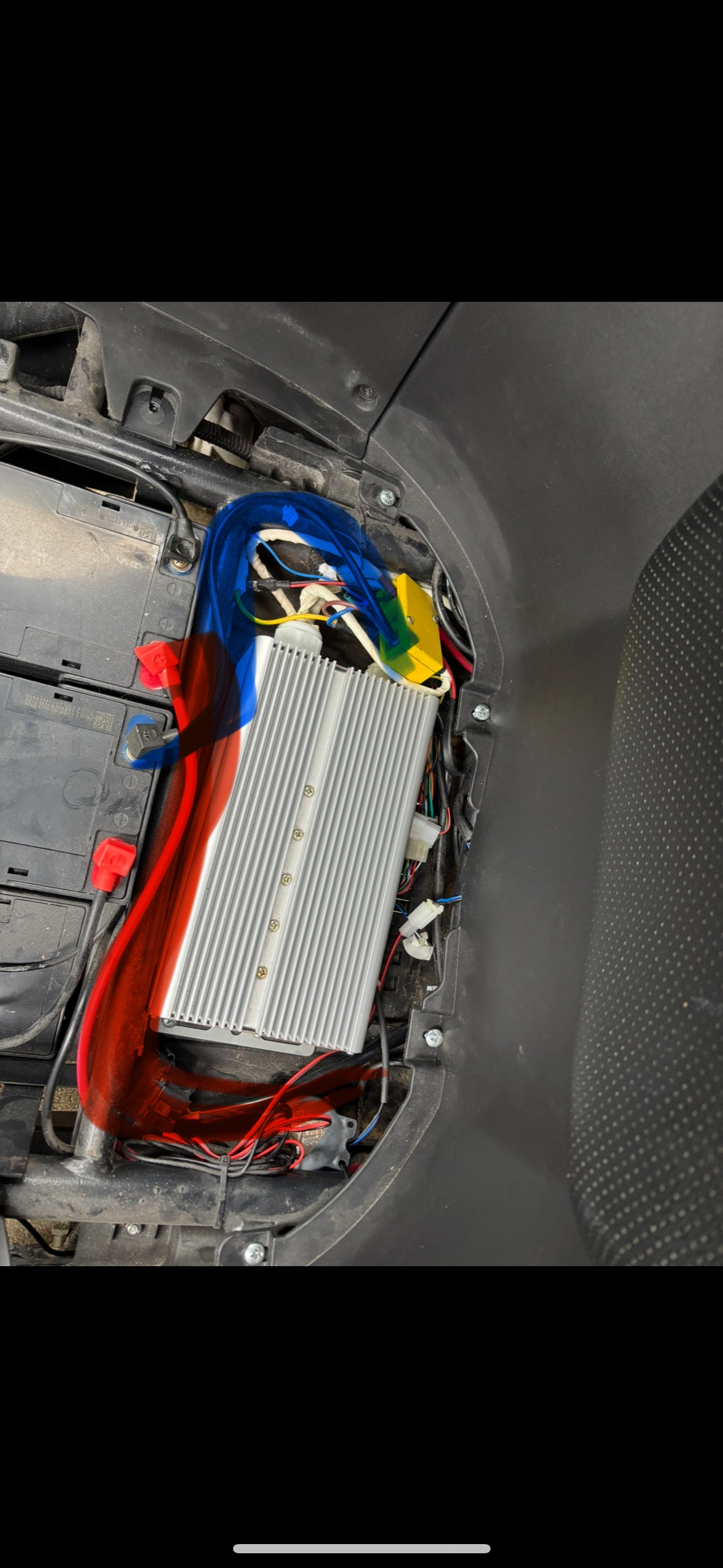Jetzt wäre der neue Akku unterm hinter Sitz und ich muss immer den Sitz demontieren um am Akku direkt zu laden.