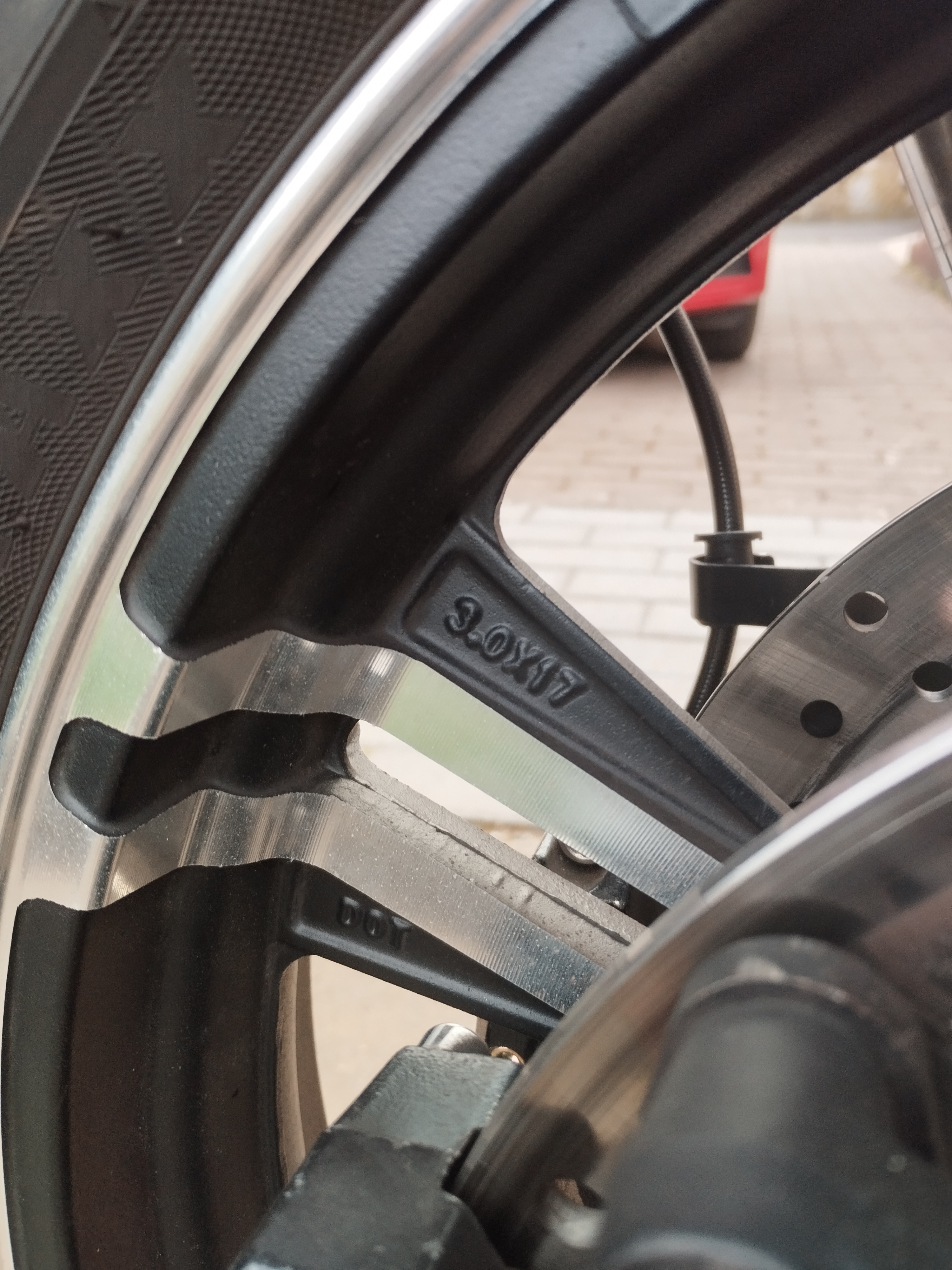 My E-Odin 2.0 has the 3.0 x 17" rim installed. And I'm riding Conti Road Attack 3 tires (110/70-17 at the front and 180/55-17 at the rear, just like mentioned at the COC) without any shimmy behaviour.