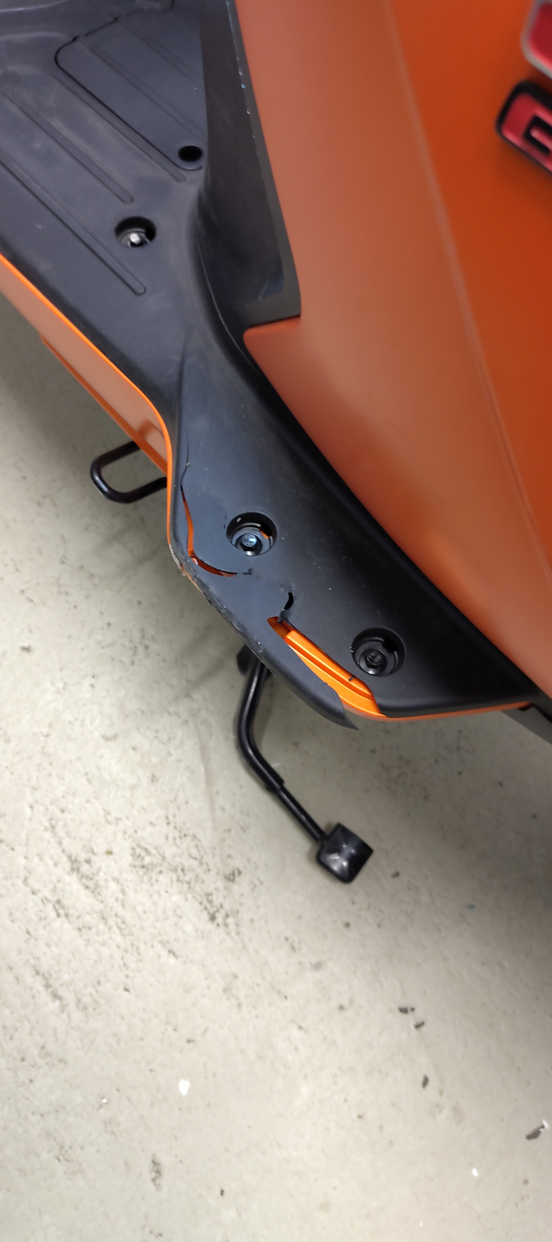 Bin bei knapp 20 km/h auf die rechte Seite gefallen, wie man deutlich sehen kann, dadurch hat es vor allem im Trittbereich so ziemlich alles abgerissen.