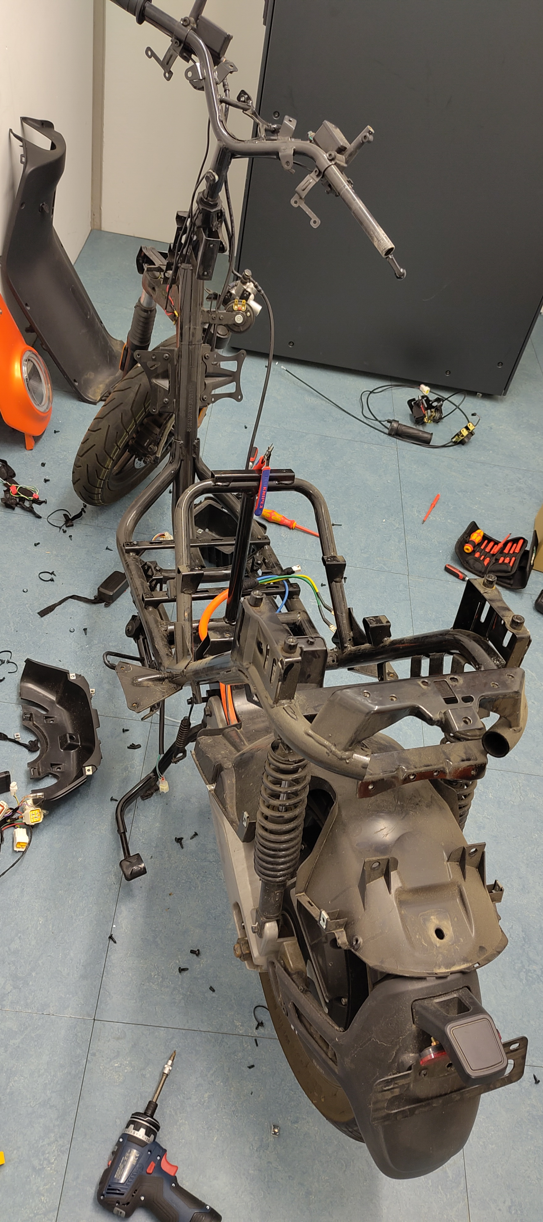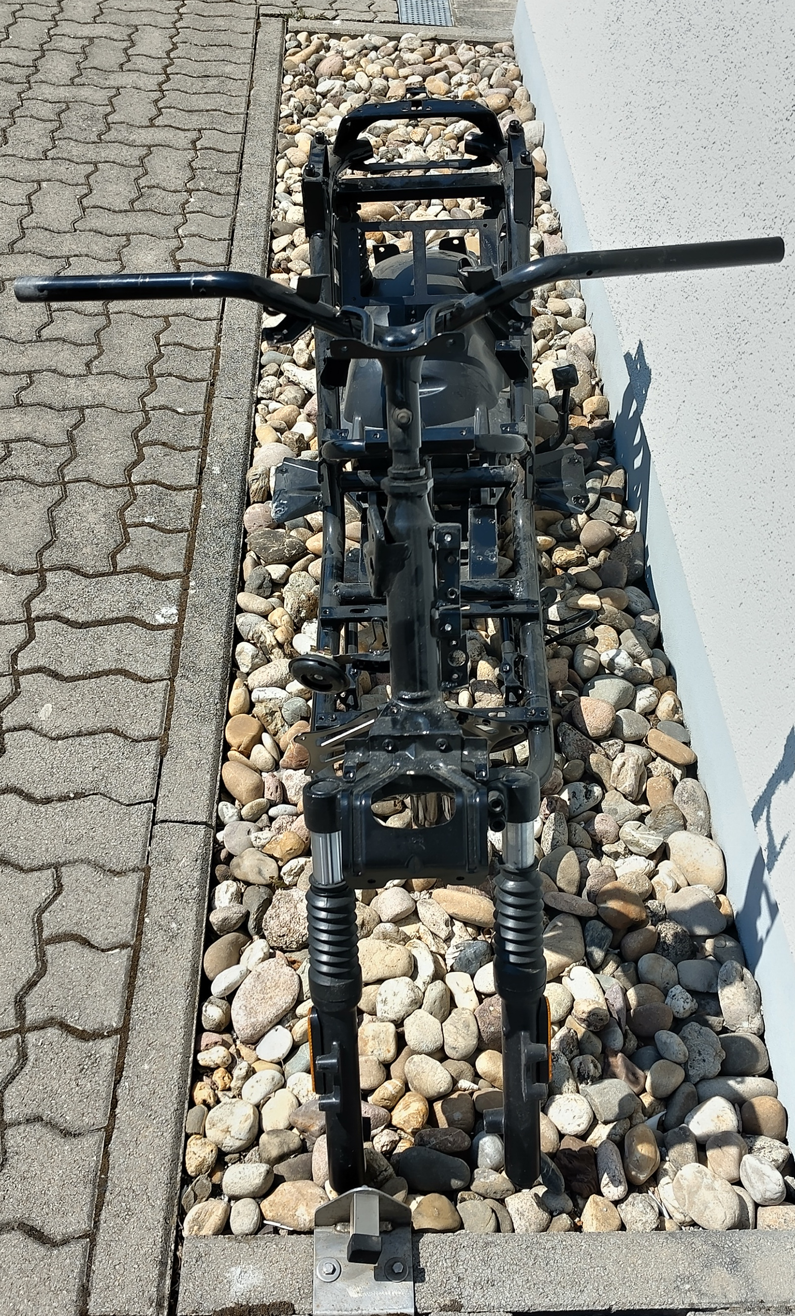 Ich warte jetzt noch bis der Prozess abgeschlossen ist und dann werde ich mal die ganze Verkleidung entfernen und Lenker komplett abbauen und den Rahmen ausmessen.