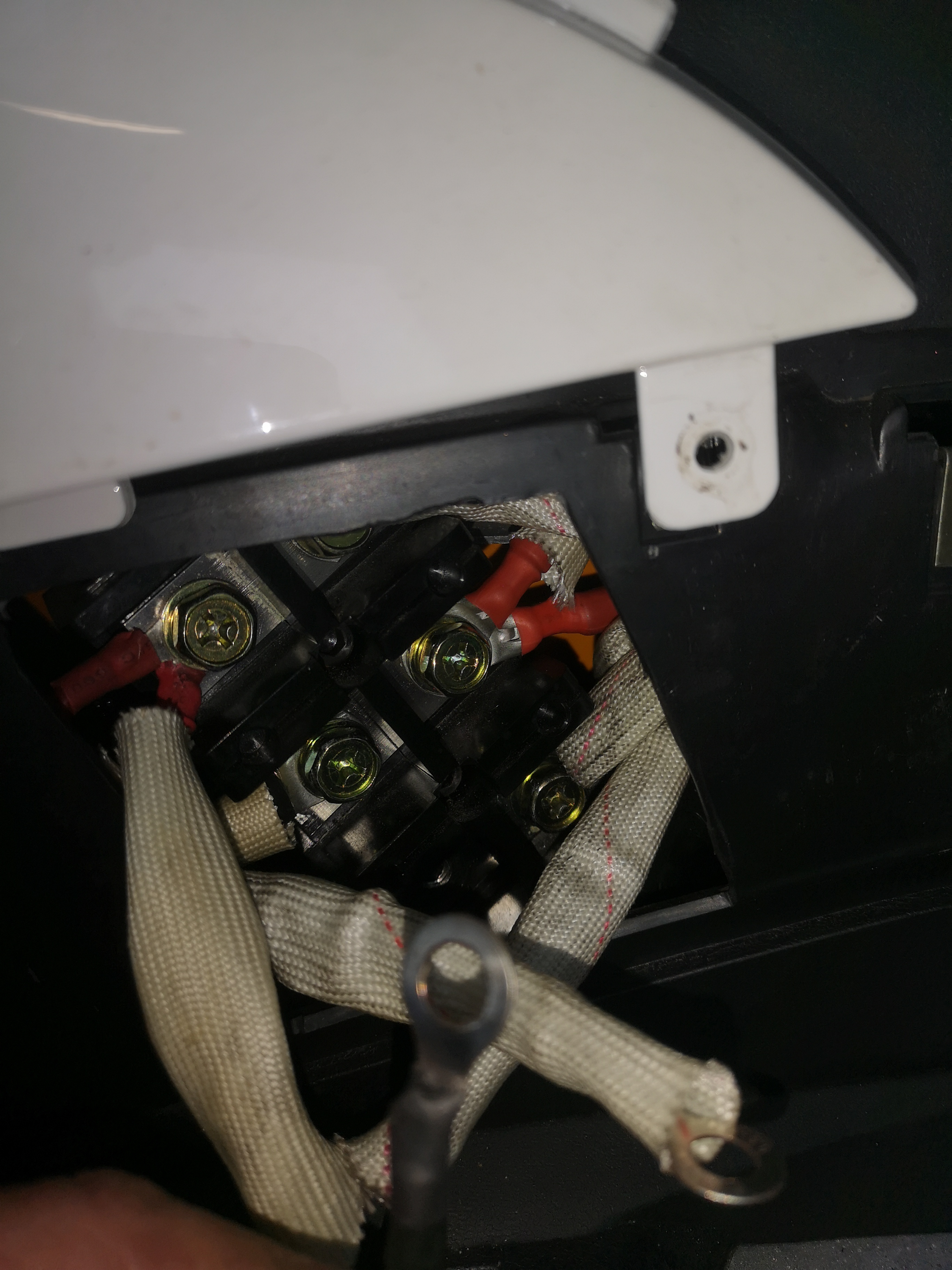 Nur gefiel mir die Klemmung von 6 recht weichen Ringkabelschuhen nicht. Stabilere Modelle kriege ich da aber nicht rein. Ordentliche massive Verteilerschienen, an den dann auch der Ladeanschluss gehört, hab ich grade nicht da und sie müssten ja auch irgendwo hinpassen.