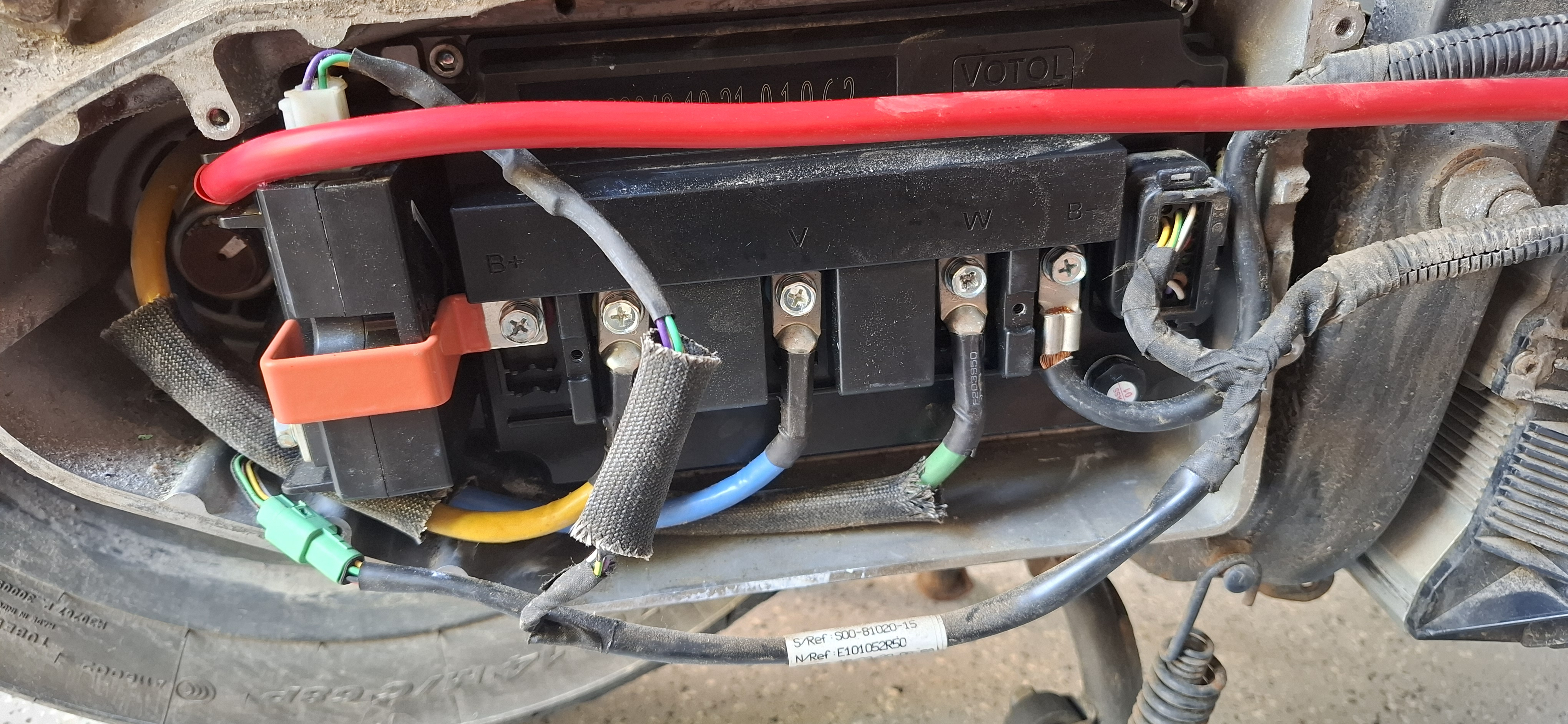 Das + - Kabel vom Akku zum Schütz war übrigens hier auch verkokelt. Das erste Mal glaube ich, das wir das bei einem Votol sehen.