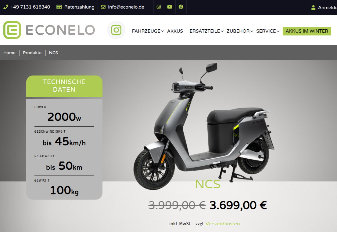 Wenn ich mir dieses Angebot ansehe, dann frage ich mich schon, weshalb der Roller 3.700 € kosten soll. Fährt nur 45 km/h, hat gerade einmal einen 2 kw-Motor und dann noch die lächerliche Reichweite von 50 km. - Der ist mindestens 2.000 € zu teuer!