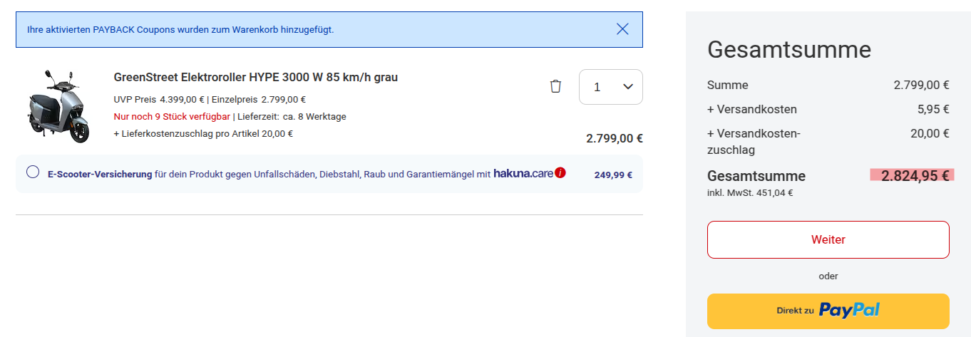 Gut, ich sehe gerade dass noch ca. 26 € Frachtkosten hinzukommen: