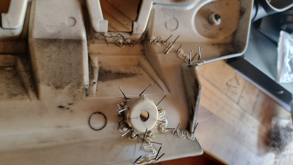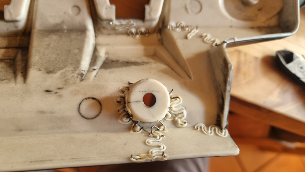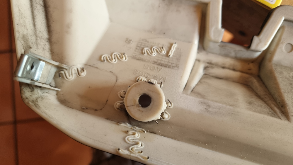 Die Verkleidungsteile sind aus einem spröden (billigen?) Kunststoff. Vor allem die Schraublaschen sind massiv bruchgefährdet.