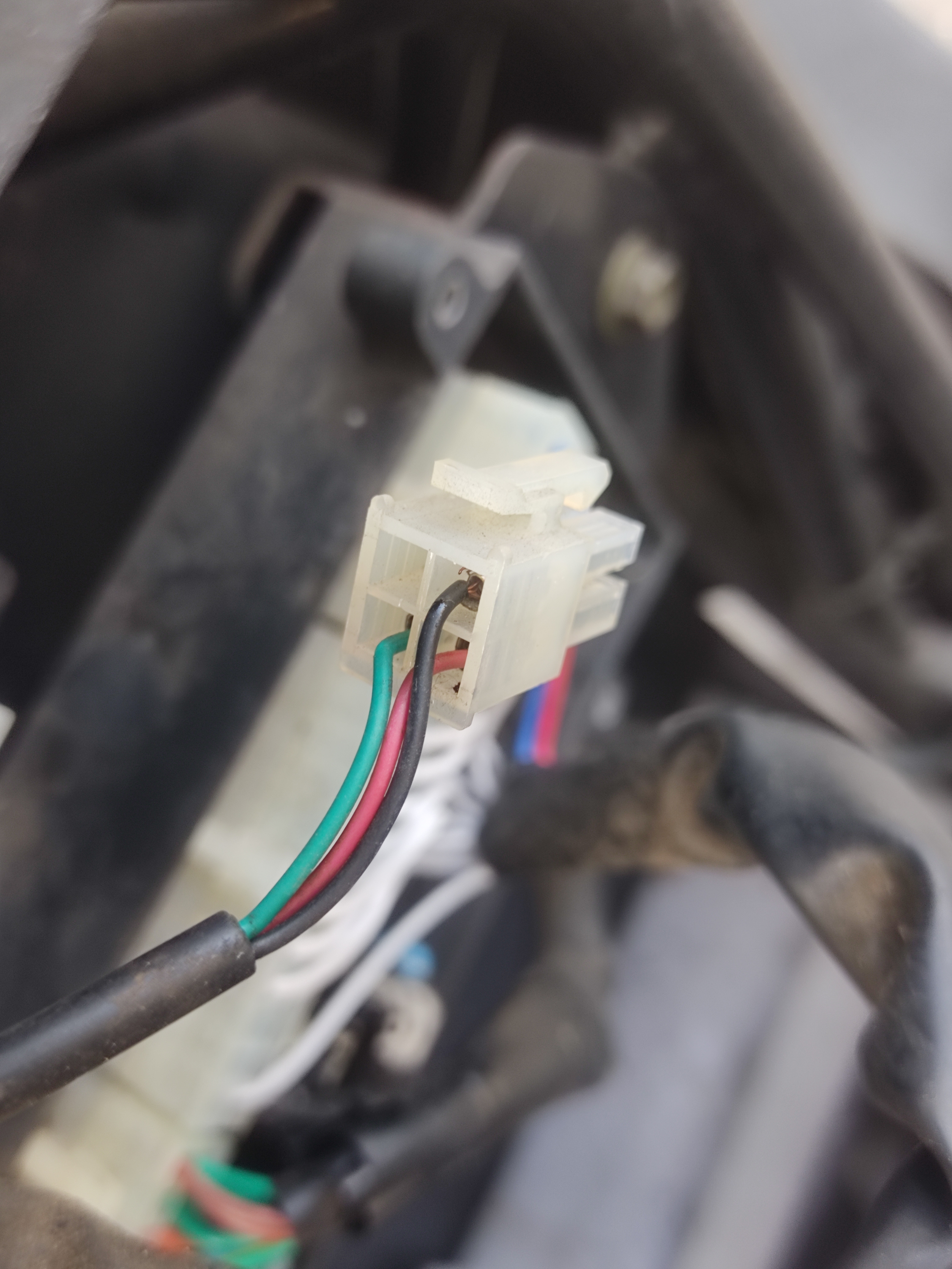 Naja, war dann doch der Gasgriff selbst. Hab das Kabel vom alten Gasgriff 10 cm nach dem Stecker abgezwickt und an die 3 Adern vom neuen Gasgriff gelötet. Schrumpfschlauch drüber und gut.