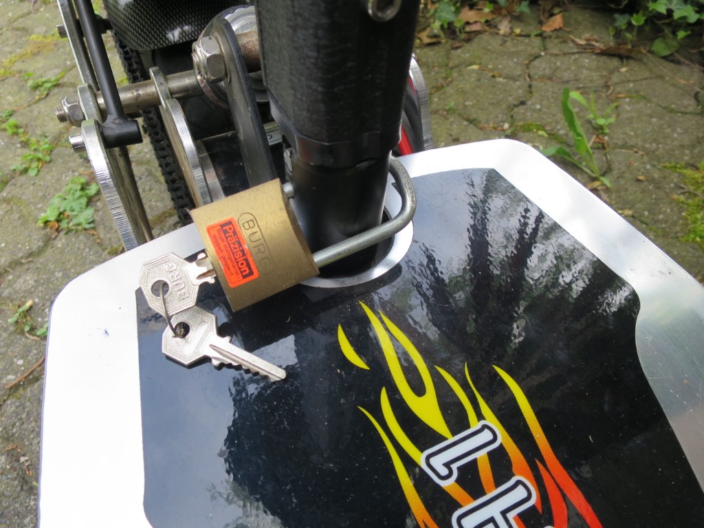 Als es noch keinen abschließbaren Knauf für die Sattelstange meines Revoluzzer gab, habe ich mir so beholfen: